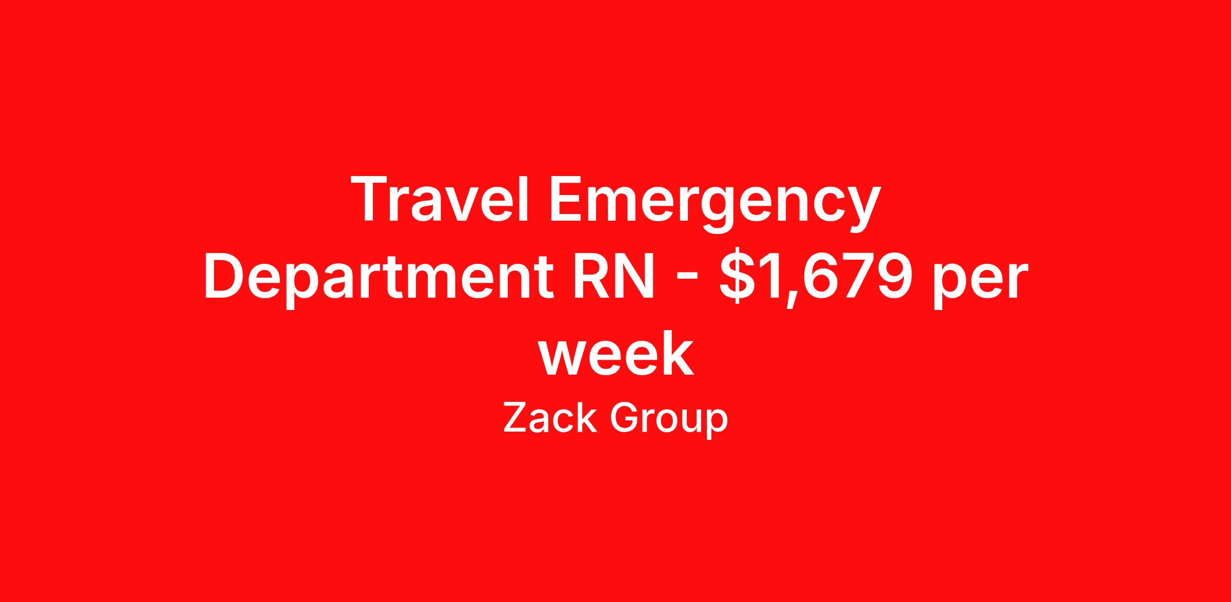 Zack Group is seeking a travel nurse RN ED - Emergency Department for a travel nursing job in Live Oak, Texas. Job Description & Requirements Specialty: ED - Emergency Department Discipline: RN Start Date: ASAP Duration: 13 weeks 36 hours per week Shift: 12 hours, nights Employment Type: Travel Zack Group is currently seeking ER RN’s for positions in Live Oak, Texas. The ideal candidate will possess a current state or equivalent compact license. This is a 3x12 Nights, 19:00:00-07:00:00, 12.00-3 position in the ER. Must have an active License in hand and have at least 2 years of recent ER experience as a RN . Requirements • Current Resume • Active License as an ER • Current BLS and/or ACLS and/or Specialty Certifications for ER • 2 current leadership references • Must be able to pass background/urine drug screening Compensation and Benefits We offer: • Highly competitive pay rates • Meals & Housing – Highest non-taxed available • Day 1 Health Benefits package • Weekly Pay • Teladoc, 401k and HRA/HSA • Refer a friend and earn extra cash! At Zack Group, we have your future in mind. It’s our priority! Please call or text us Today! Our Healthcare recruiters are standing by! Opt In: By providing your phone number and engaging with Lynn Care, LLC (also known as Zack Group), its affiliates, and contracted partners—including via text message, phone call, AI-generated call, AI-generated text, or email—you consent to receive communications regarding job opportunities. Message frequency may vary based on your engagement. By texting Zack Group or any associated entity, you agree to our Privacy Policy and Terms of Use ( You can reply STOP to cancel and HELP for help) Zack Group Job ID 36007803. Pay package is based on 12 hour shifts and 36.0 hours per week (subject to confirmation) with tax-free stipend amount to be determined. Posted job title: RN:ER,19:00:00-07:00:00 About Zack Group Zack Group has been active in the medical staffing sector for over 25 years, providing a wide range of services to top-tier healthcare facilities, including PRN/Per Diem, contract and permanent placement. Through its Traveling Nurse division, Zack Group places certified nursing professionals with healthcare facilities across the United States. Headquartered in Overland Park, KS, Zack Group has additional representation in Topeka and Wichita, Kansas, along with Tulsa, Oklahoma. Our local office partners with facilities throughout the Kansas, Missouri, and Oklahoma region while our travel office handles the whole country. Benefits 401k retirement plan Medical benefits Dental benefits Vision benefits