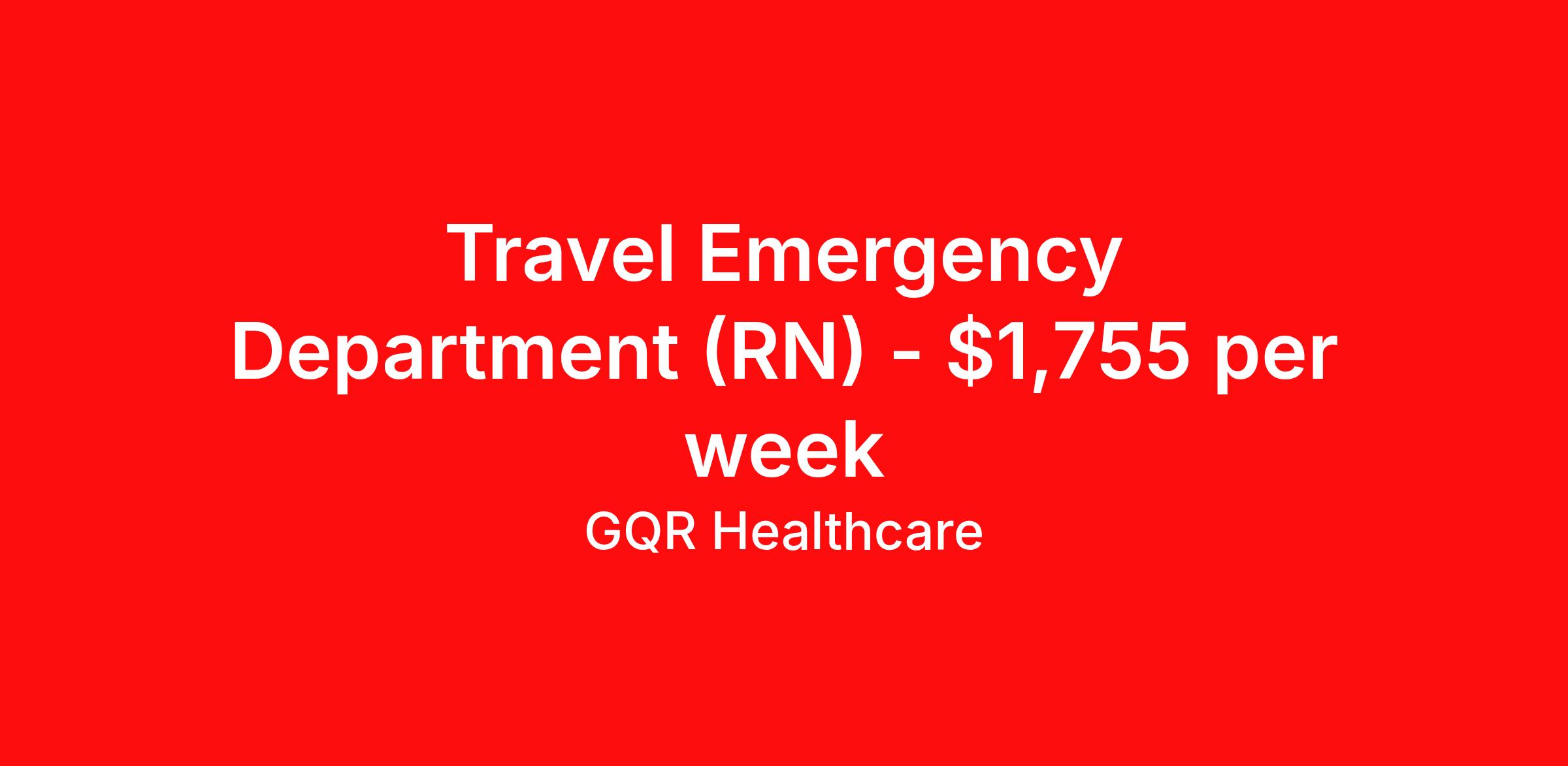 GQR Healthcare is seeking a travel nurse RN ED - Emergency Department for a travel nursing job in Newton, Massachusetts. Job Description & Requirements Specialty: ED - Emergency Department Discipline: RN Start Date: ASAP Duration: 13 weeks 36 hours per week Shift: 12 hours, nights Employment Type: Travel GQR Healthcare is representing a well-known health system seeking experienced Emergency Room providers to add to their team. If you are passionate about providing exceptional care and looking to explore a rewarding career opportunity, we'd love to hear from you! Apply now, and a dedicated GQR consultant will connect with you to discuss the role, answer your questions, and guide you through the process. About GQR Healthcare: At GQR Healthcare, we are committed to supporting healthcare professionals at every stage of their careers. When you partner with us, you gain access to a wide range of benefits and support, including: Day 1 Benefits: Enjoy comprehensive healthcare coverage, including medical, dental, and vision plans, starting on your first day. Guaranteed Hours: We provide contract stability by offering guaranteed hours, ensuring you have the predictability you need. Continuing Education & Development: We invest in your growth by offering opportunities for professional development and ongoing education. 24/7 Consultant Support: Our dedicated consultants are available around the clock to assist with any needs or questions you have. Seamless Placement Process: We handle all the details, from onboarding to interviews, so you can focus on what you do best - providing exceptional patient care. Partnering with GQR means more than just finding your next job - it's about building a meaningful career with a team that truly supports your goals. GQR Job ID 225469. Pay package is based on 12 hour shifts and 36 hours per week (subject to confirmation) with tax-free stipend amount to be determined. Posted job title: Registered Nurse (RN) About GQR Healthcare GQR’s Healthcare team specializes in connecting experts within the industry to highly skilled healthcare professionals across the US market. In the competitive healthcare market, we recognize that the industry’s common goals of improved quality of care and patient outcomes are wholly reliant upon the professionals directly supporting these initiatives. Leveraging our extensive candidate network, we deliver continuity of care for the communities our partners serve to ensure the patient experience is of the highest quality. Through deep market specialization and a unique approach to talent acquisition, GQR Healthcare provides an unparalleled and personalized experience across all medical specialties in nursing and within diverse healthcare platforms across the industry.