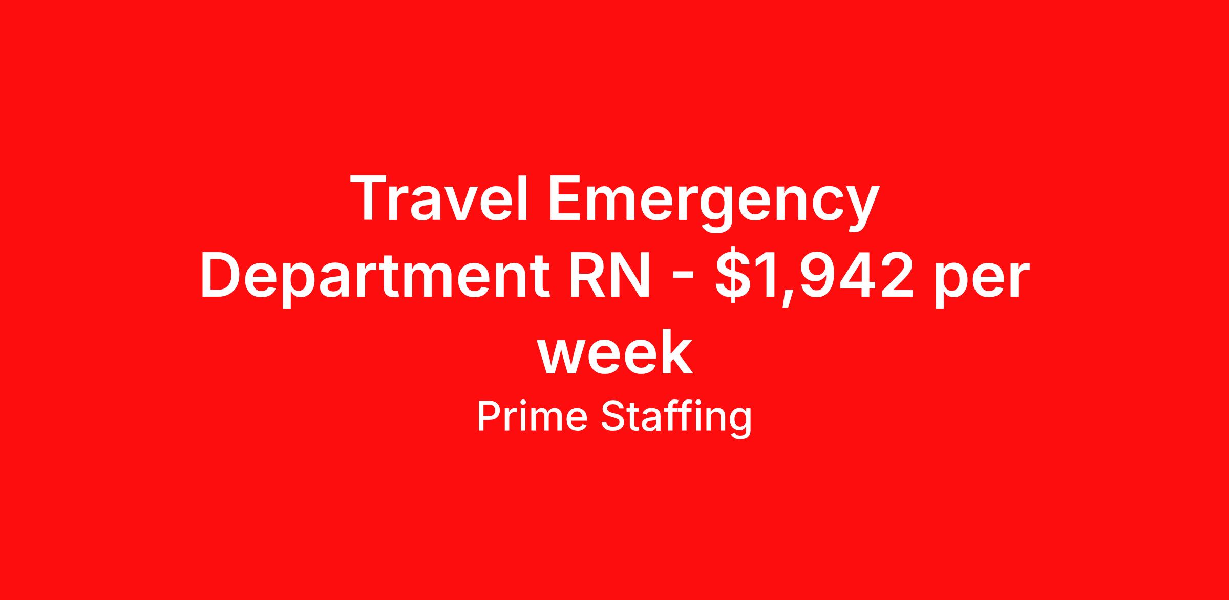 Prime Staffing is seeking a travel nurse RN ED - Emergency Department for a travel nursing job in State College, Pennsylvania. Job Description & Requirements Specialty: ED - Emergency Department Discipline: RN Start Date: ASAP Duration: 13 weeks 36 hours per week Shift: 12 hours Employment Type: Travel About the Position Specialty: Registered Nurse – Emergency Department (ED) Experience: Minimum 2 years of recent ED experience required License: Active state or Compact RN License Certifications: BLS, ACLS, PALS – must include expiration dates Must-Have: All time-off requests must be submitted with the initial application Description: We are seeking a skilled Emergency Department RN to provide high-quality, efficient care in a fast-paced environment. Responsibilities include triaging patients, responding to emergencies, administering medications, and collaborating with the healthcare team to stabilize and treat critically ill or injured patients. This is a 12-hour shift role with rotating weekends, holidays, and call requirements. Candidates may be asked to float within the facility based on department needs. Onboarding typically takes 4–6 weeks . Requirements Required for Onboarding: Active RN License BLS, ACLS, PALS Prime Staffing Job ID 35700178. Pay package is based on 12 hour shifts and 36.0 hours per week (subject to confirmation) with tax-free stipend amount to be determined. Posted job title: RN:Emergency Department (ER/ED),19:00:00-07:30:00 About Prime Staffing At Prime Staffing, we understand the importance of finding the perfect fit for both our clients and candidates. Prime Staffing utilizes a unique matchmaking approach, providing the most qualified contingent staffing to our clients, and the most competitive contracts to our workforce. Our experienced team takes the time to get to know both our clients and candidates, their needs, and preferences, to ensure that each placement is a success. We offer a wide range of staffing services including temporary, temp-to-perm, and direct hire placements. Our extensive network of qualified candidates includes nurses, allied healthcare professionals, corporate support professionals and executives.