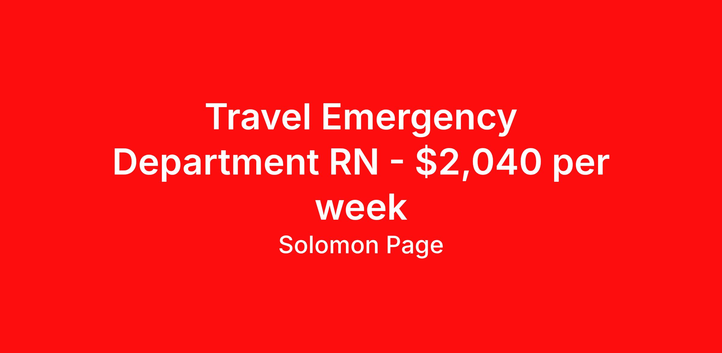 Travel Emergency Department RN - $2,040 per week