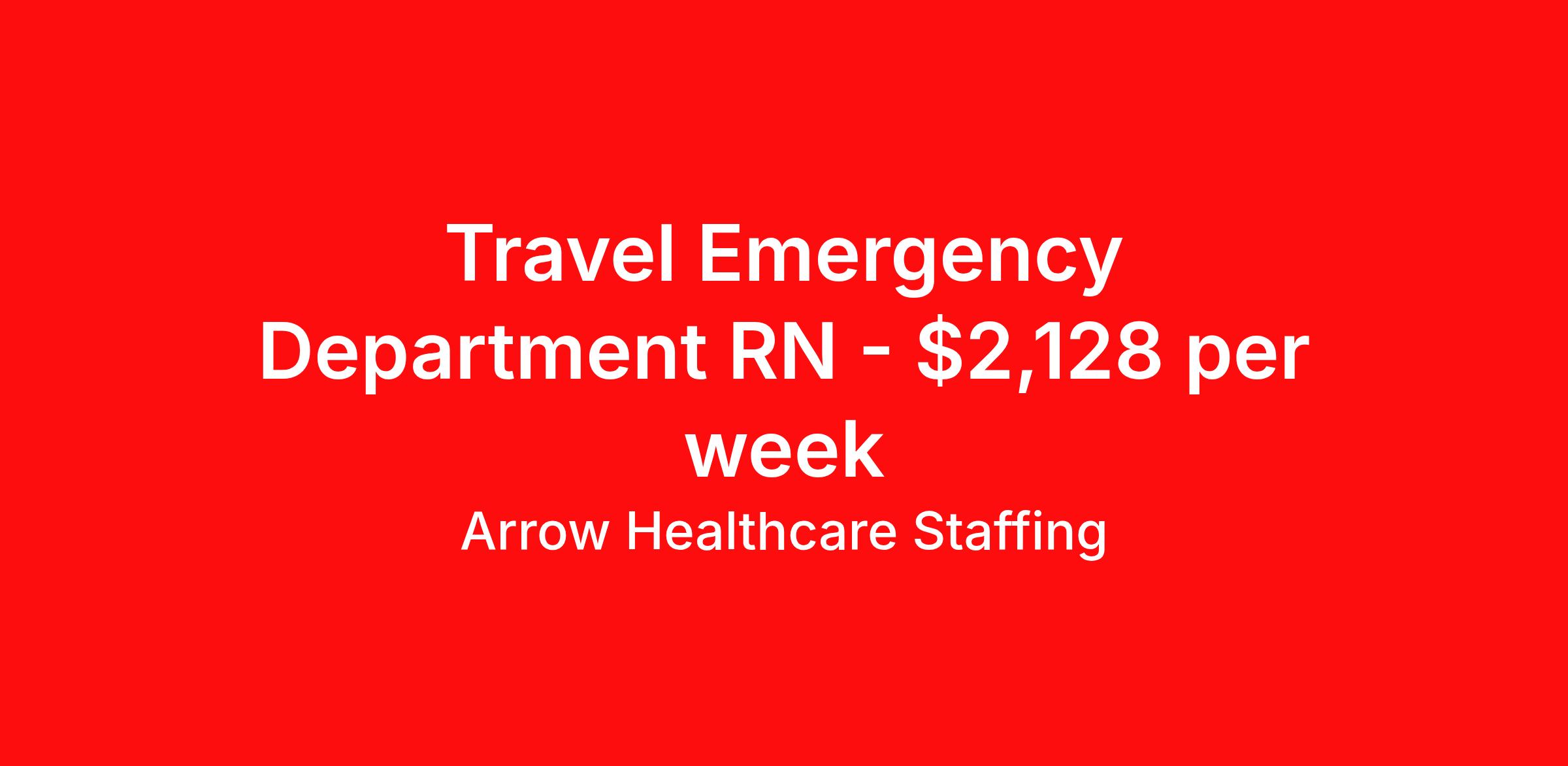 Arrow Healthcare Staffing is seeking a travel nurse RN ED - Emergency Department for a travel nursing job in Findlay, Ohio. Job Description & Requirements Specialty: ED - Emergency Department Discipline: RN Start Date: 04/13/2026 Duration: 13 weeks 36 hours per week Shift: 12 hours, nights Employment Type: Travel Nights, 7p-7a with every third weekend holiday rotation 2 years of recent ER experience required. Travel experience preferred. ACLS, BLS, PALS, TNCC required. Cerner experience highly preferred. Arrow Healthcare Staffing Job ID 17988663. Pay package is based on 12 hour shifts and 36.0 hours per week (subject to confirmation) with tax-free stipend amount to be determined. Posted job title: RN ER About Arrow Healthcare Staffing Arrow Healthcare Staffing is a Midwest based travel nursing and allied health recruiting firm. We specialize in local/ travel nursing, medical laboratory, pharmacy, radiology/imaging, therapy, and executive/leadership recruitment. We offer direct hospital contracts and all of the top benefits in the marketplace today. Benefits Medical benefits Vision benefits Weekly pay Benefits start day 1 Holiday Pay 401k retirement plan Dental benefits License and certification reimbursement Guaranteed Hours Continuing Education Cancelation protection Mileage reimbursement Referral bonus