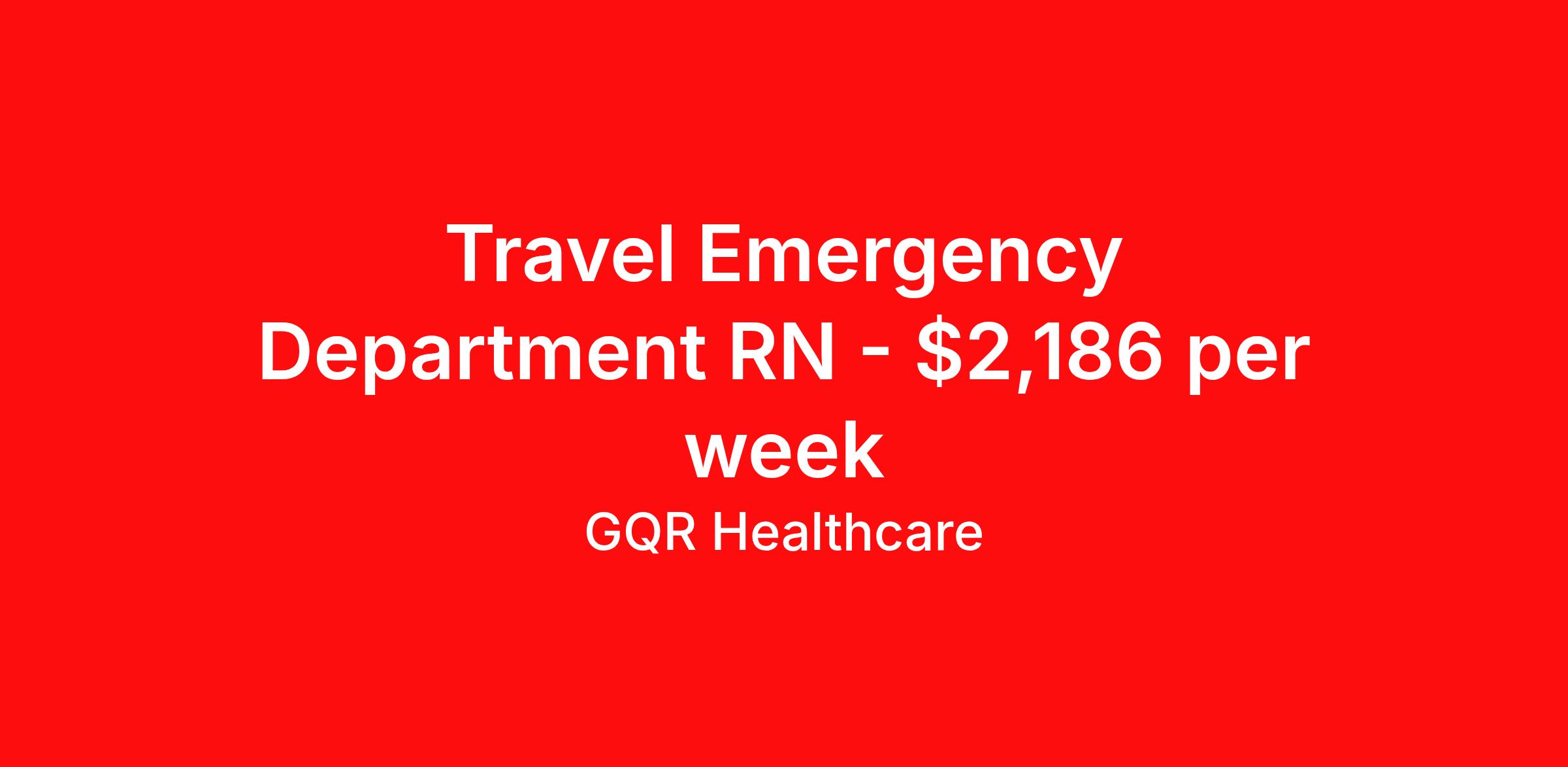 GQR Healthcare is seeking a travel nurse RN ED - Emergency Department for a travel nursing job in Urbana, Illinois. Job Description & Requirements Specialty: ED - Emergency Department Discipline: RN Start Date: 04/13/2026 Duration: 13 weeks 36 hours per week Shift: 12 hours, days Employment Type: Travel Contract - W2 Emergency Room (ER) Registered Nurse (RN) Job Location: Urbana, Illinois Start Date: April 13, 2026 Profession: Registered Nurse (RN) Facility: Short Term Acute Care Estimated Pay: $2186.32 - $2281.32 Duration:13 weeks Specialty:Emergency Room (ER) Shift: Day Shift Details: null Day Job Type: Travel *Estimated weekly pay includes projected hourly wages and weekly meal and lodging per diems for eligible clinicians based on nationally published GSA rates. Actual weekly pay and per diems may differ from the amount shown and are subject to change during an assignment. Benefits: Day 1 Insurance Cigna medical, MetLife dental and vision insurance License reimbursement for new licenses needed for each assignment Discounts with hotels and rental cars A dedicated recruiter and support team that will help you every step of the way to sure you start on time and have an exceptional experience Referral bonus up to $700 About the Company: Finding the right role is about more than just matching skills to a job—it’s about aligning with your goals, values, and the way you want to work. As an award-winning talent partner, we support healthcare professionals through every step of that process, offering meaningful opportunities, clear guidance, and long-term partnership. From our first conversation to your first day on the job (and beyond!), we’re here to help you move forward with confidence. GQR Job ID 788676. Pay package is based on 12 hour shifts and 36 hours per week (subject to confirmation) with tax-free stipend amount to be determined. Posted job title: Registered Nurse (RN) About GQR Healthcare GQR’s Healthcare team specializes in connecting experts within the industry to highly skilled healthcare professionals across the US market. In the competitive healthcare market, we recognize that the industry’s common goals of improved quality of care and patient outcomes are wholly reliant upon the professionals directly supporting these initiatives. Leveraging our extensive candidate network, we deliver continuity of care for the communities our partners serve to ensure the patient experience is of the highest quality. Through deep market specialization and a unique approach to talent acquisition, GQR Healthcare provides an unparalleled and personalized experience across all medical specialties in nursing and within diverse healthcare platforms across the industry.