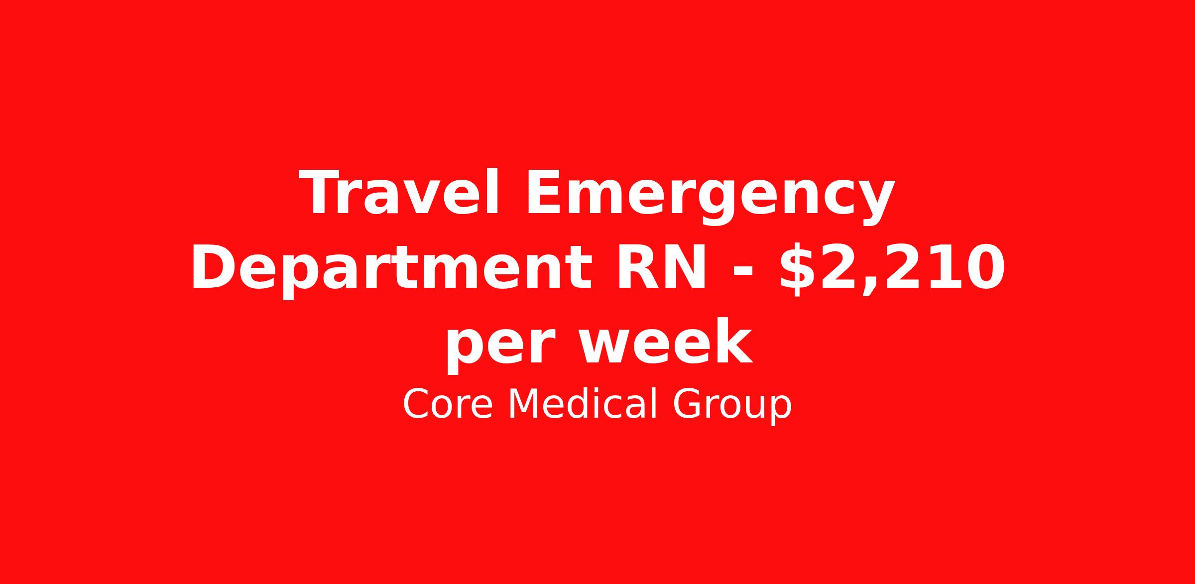 Core Medical Group is seeking a travel nurse RN ED - Emergency Department for a travel nursing job in Urbana, Illinois. Job Description & Requirements Specialty: ED - Emergency Department Discipline: RN Start Date: 04/13/2026 Duration: 13 weeks 36 hours per week Shift: 12 hours Employment Type: Travel Client in IL seeking Registered Nurse: Emergency Room for the following shift(s): Days We are looking for a healthcare professional who is ready to provide exceptional patient care in this contract/travel role. Contract/travel assignments are typically 13 weeks, with potential to extend. Help us continue our mission to connect people, improve lives, and give back to the community by joining the CoreMedical Group team. When you work with CoreMedical Group, we put you first and treat you like family, supporting you every step of the way. CoreMedical Group is one of the largest healthcare staffing agencies in the country, with travel and contract positions located across the United States. Our recruiters will help you find the perfect job, whether it's across the country or across the street. In addition to dedicated, personalized support from your recruiter, when you work with CoreMedical Group you'll receive: Access to an extensive benefits package, including day 1 health, dental, and vision insurance, employer paid life insurance, a health reimbursement account, and more! Weekly paychecks with competitive pay packages Matching 401(k) benefits to help you save for retirement Licensure assistance and reimbursement to set you up for success on your contract Travel reimbursement and dedicated housing support while on assignment Referral cash bonuses when you connect us with other clinicians CoreMedical Group also offers you a free, all-inclusive vacation each year as our way of saying "thank you" for your hard work. Join other healthcare professionals on the annual Club CoreMed retreat and you'll see why our contract and travel professionals come back to us year after year! Your career is too valuable to tackle on your own. Let CoreMedical Group help you with your healthcare journey! *Estimate of weekly payments is intended for informational purposes and includes hourly wages, as well as reimbursements for meal & incidental expenses, and housing expenses incurred on behalf of the Company. Any benefits (medical/dental/vision) are in addition to the weekly pay. Please speak with your Recruiter for additional details. Estimated payments are subject to change until formal offer of assignment is made and accepted. Core Medical Group Job ID 1366712. Pay package is based on 12 hour shifts and 36 hours per week (subject to confirmation) with tax-free stipend amount to be determined. Posted job title: RN About Core Medical Group CoreMedical Group is one of the largest healthcare staffing agencies in the country. We have jobs nationwide in travel nursing, travel allied health, interim, locum tenens, and permanent placements! Join the staffing agency with Club CoreMed, the best perk in the industry - an all inclusive paid trip to a tropical resort! Benefits Weekly pay Holiday Pay Guaranteed Hours Continuing Education 401k retirement plan Pet insurance Company provided housing options Sick pay Wellness and fitness programs Mileage reimbursement Referral bonus Employee assistance programs Medical benefits Dental benefits Vision benefits Benefits start day 1 License and certification reimbursement Life insurance Discount program