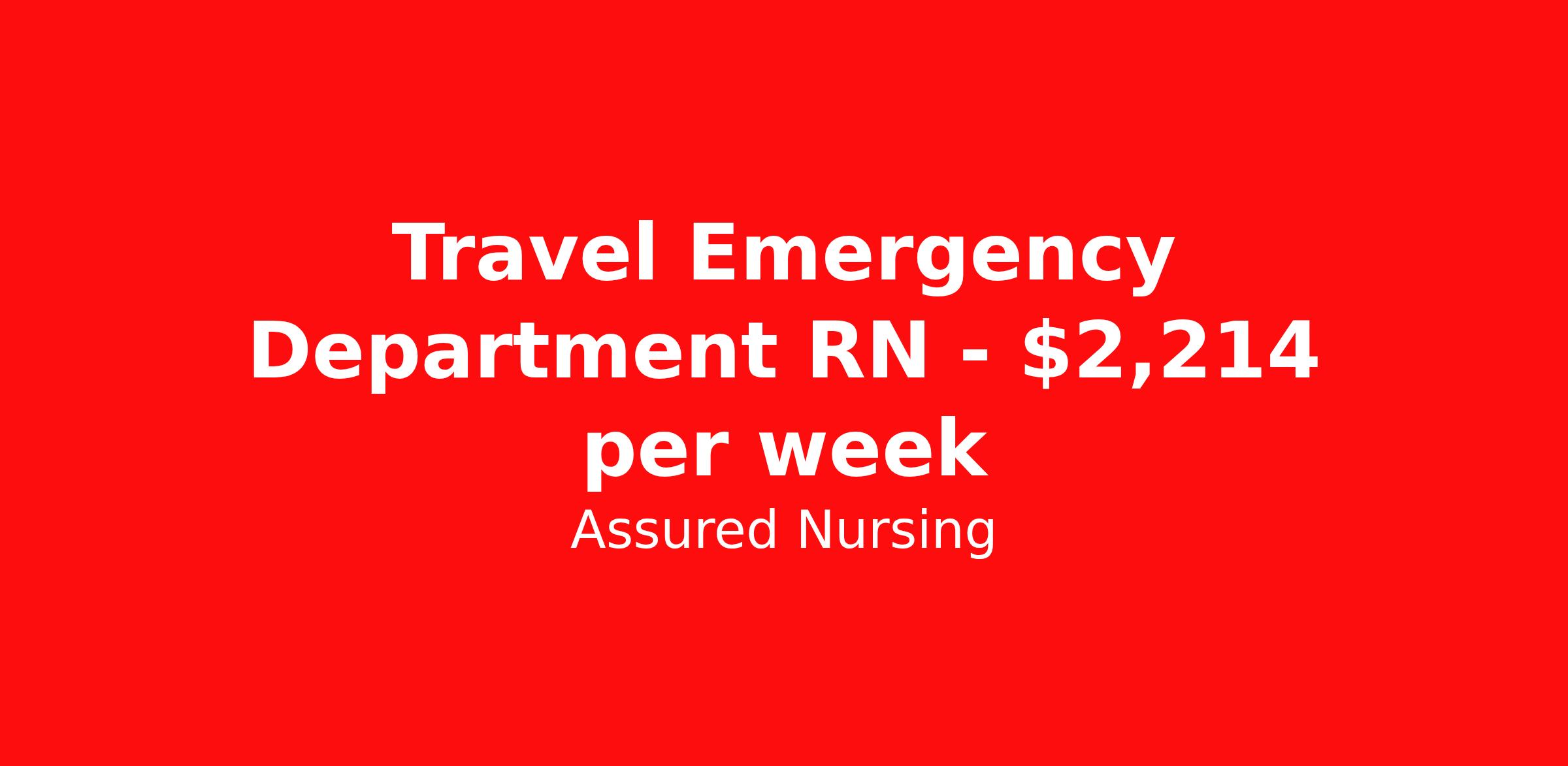 Assured Nursing is seeking a travel nurse RN ED - Emergency Department for a travel nursing job in Nantucket, Massachusetts. Job Description & Requirements Specialty: ED - Emergency Department Discipline: RN Start Date: 06/29/2026 Duration: 13 weeks 36 hours per week Shift: 12 hours, days, nights, rotating Employment Type: Travel 36 hrs./week, rotating shifts. Mass RN License & BLS, ACLS, PALS required upon start. Shared housing provided at no cost. Assured Nursing Job ID 36150201. Pay package is based on 12 hour shifts and 36.0 hours per week (subject to confirmation) with tax-free stipend amount to be determined. Posted job title: RN:ER,19:00:00-07:00:00 Benefits Weekly pay Holiday Pay 401k retirement plan Referral bonus Medical benefits Dental benefits Vision benefits