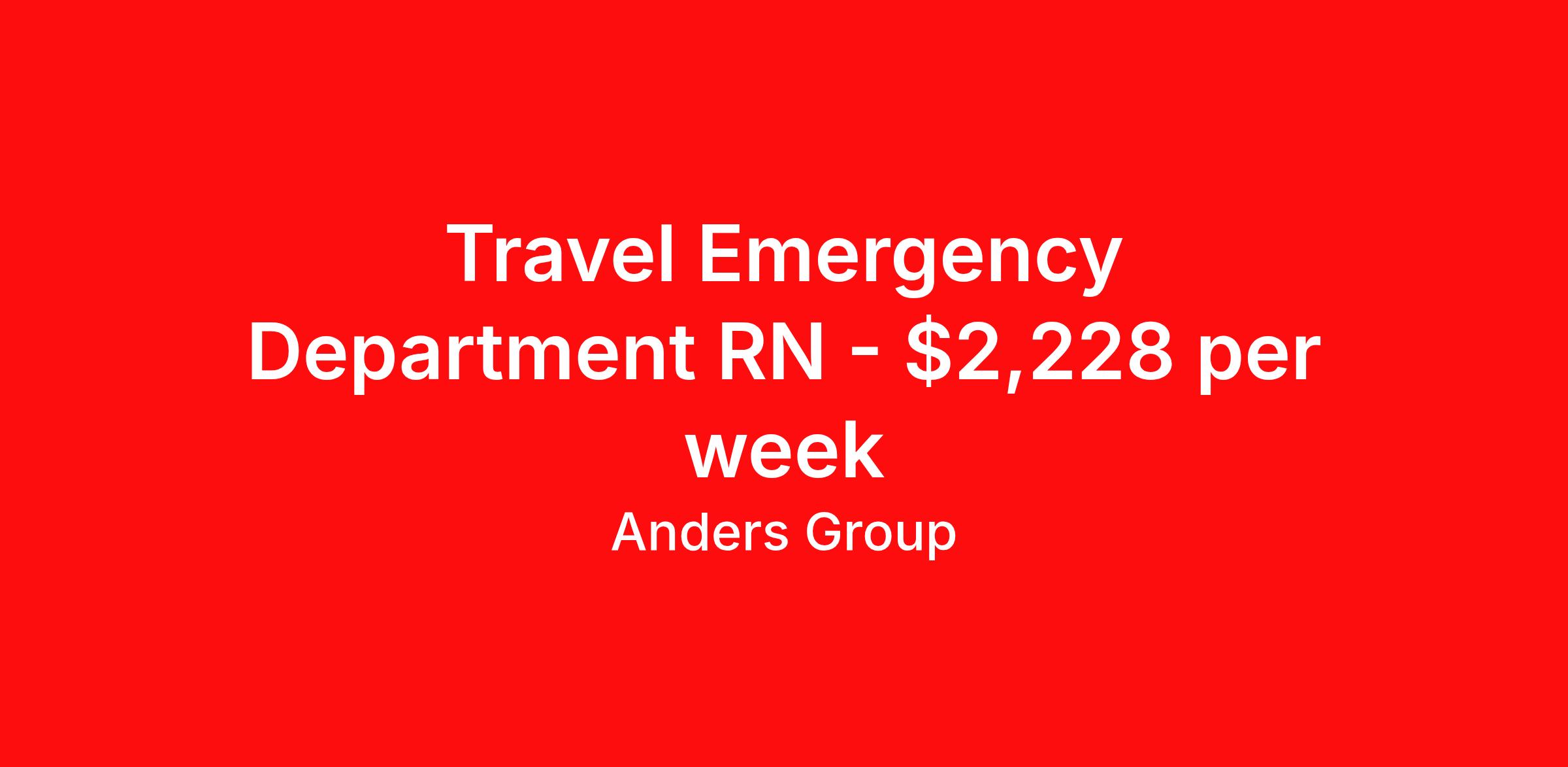 Travel Emergency Department RN - $2,228 per week