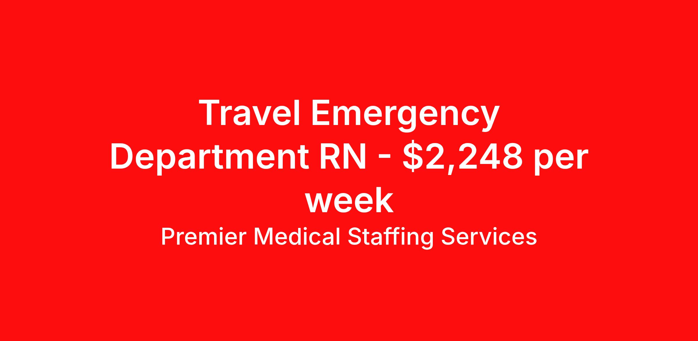 Premier Medical Staffing Services is seeking a travel nurse RN ED - Emergency Department for a travel nursing job in Antigo, Wisconsin. Job Description & Requirements Specialty: ED - Emergency Department Discipline: RN Start Date: 04/06/2026 Duration: 12 weeks 36 hours per week Shift: 12 hours Employment Type: Travel Premier Medical Staffing Job ID 626255. Pay package is based on 12 hour shifts and 36 hours per week (subject to confirmation) with tax-free stipend amount to be determined. Posted job title: RN ER About Premier Medical Staffing Services Premier Medical Staffing Services, LLC is a nationally expanding healthcare staffing firm for healthcare professionals and companies. We understand our clients’ need for highly qualified, expertly trained medical professionals and are passionate about helping clinicians find employment opportunities that fit their personality and needs. Able to accommodate the ever-changing needs of the healthcare landscape, we offer per-diem, contract and direct hire placements to support the unique needs of each industry sector. Premier Medical Staffing Services is Joint Commission Certified, a Military Spouse Employment Partner and is certified as a Women’s Business Enterprise. We are proudly nurse owned.