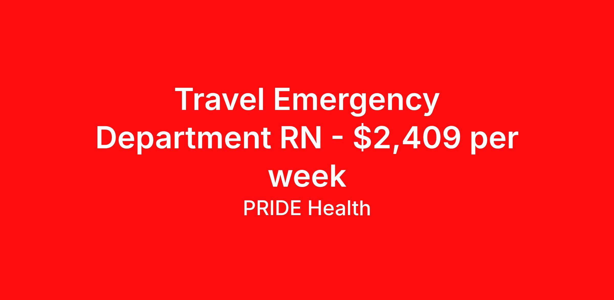 Travel Emergency Department RN - $2,409 per week