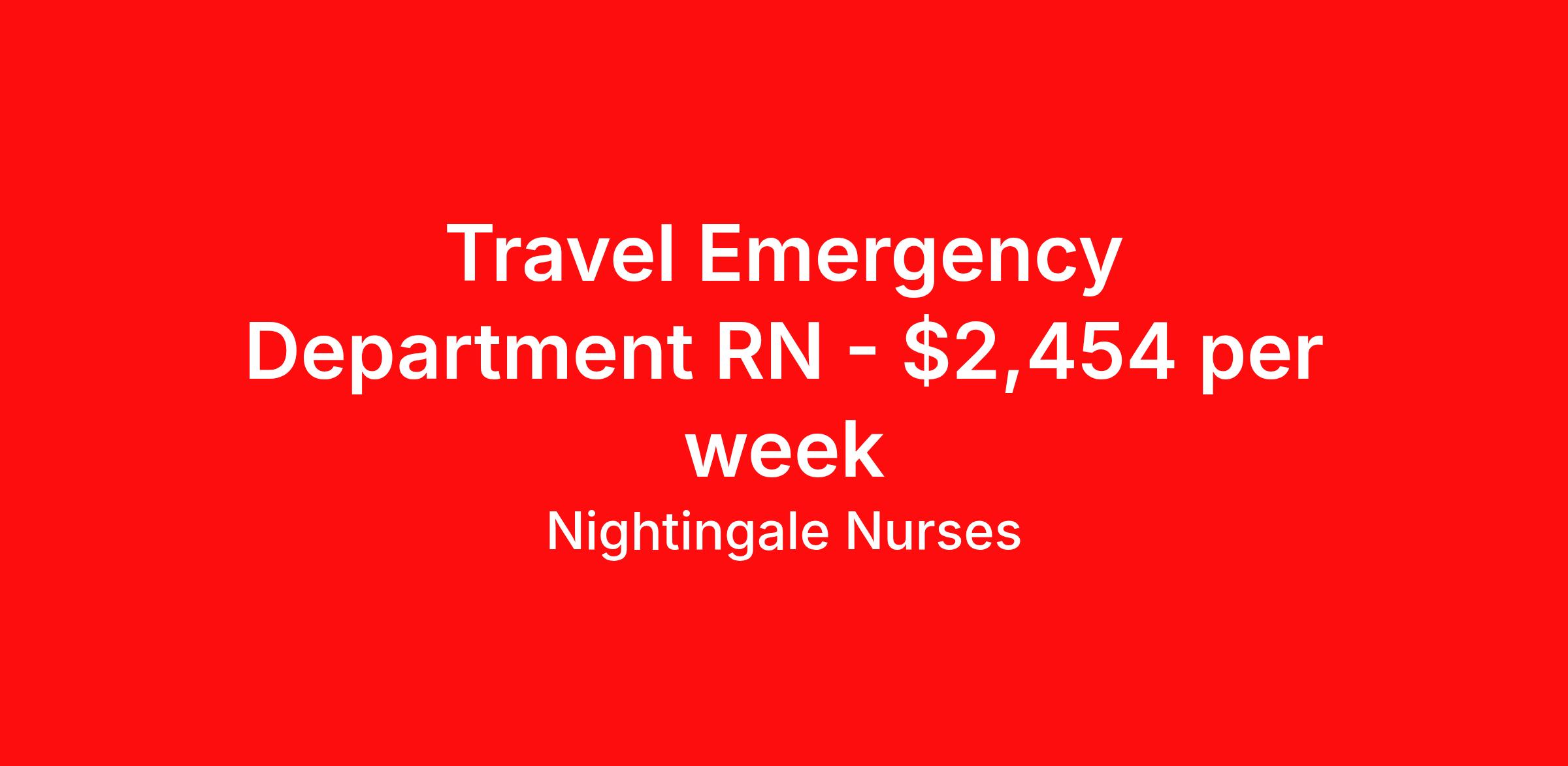 Nightingale Nurses is seeking a travel nurse RN ED - Emergency Department for a travel nursing job in Oswego, New York. Job Description & Requirements Specialty: ED - Emergency Department Discipline: RN Start Date: 04/20/2026 Duration: 6 weeks 36 hours per week Shift: 12 hours, nights Employment Type: Travel About Nightingale Nurses the first name in travel nursing You may not realize it, but as an RN with real world hospital experience, you are legendary. To the lives you’ve helped save, the patients you’ve cared for, and to the hospitals where you’ve done it. And you’re just getting started. Legendary is where Nightingale begins. We’re the first name in travel nursing, representing only the very best RNs. That’s why hospitals prefer us, allowing us to offer exceptional travel nursing assignments all over the US, as well as the highest pay rates and most extensive benefits in the industry. Nightingale facilitates every aspect of your travel nursing assignment, so you can focus on doing what you do best. We want you to grow, explore, and enjoy unrivaled liberty, the freedom to nurse.