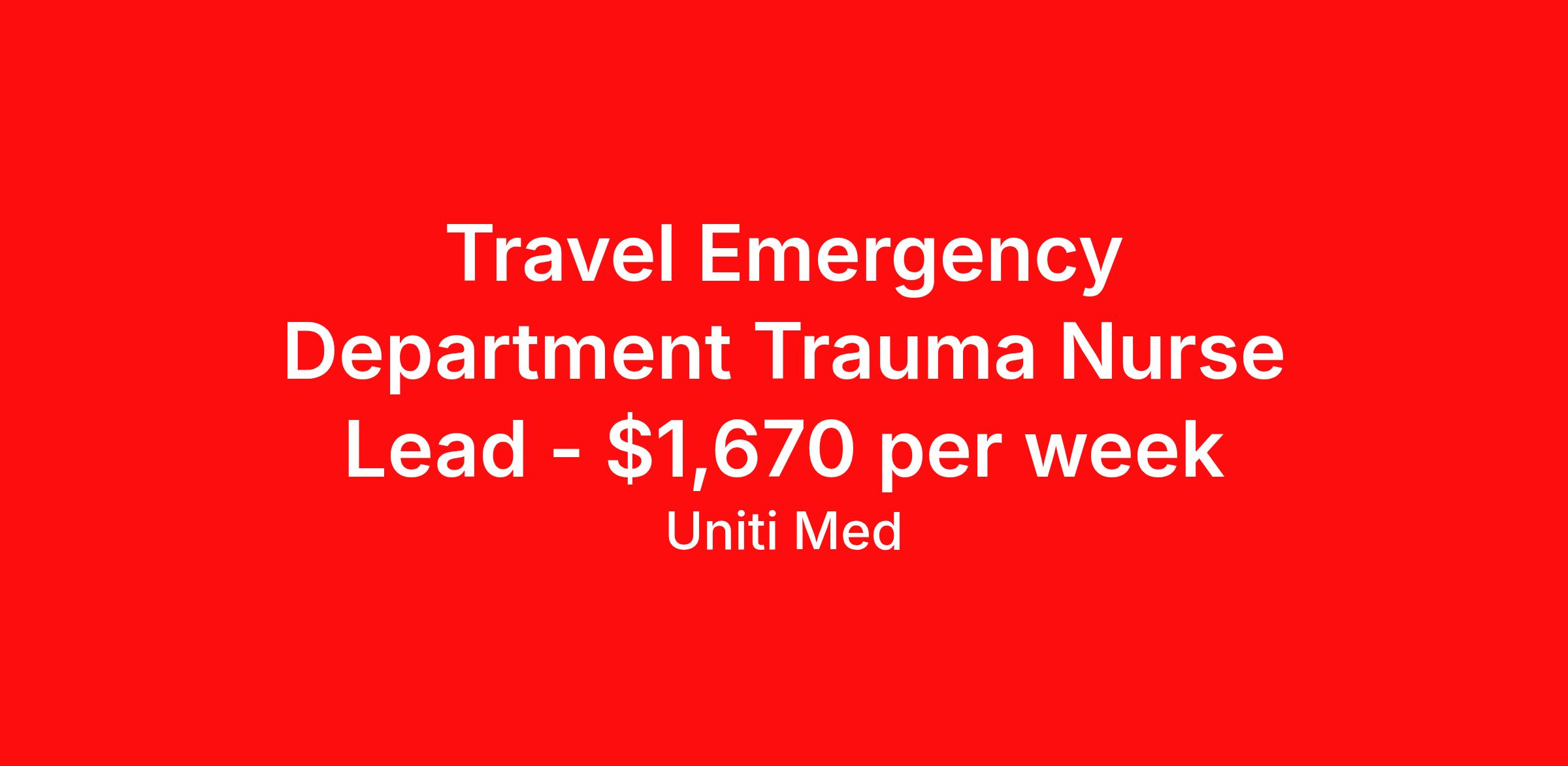 Travel Emergency Department Trauma Nurse Lead - $1,670 per week