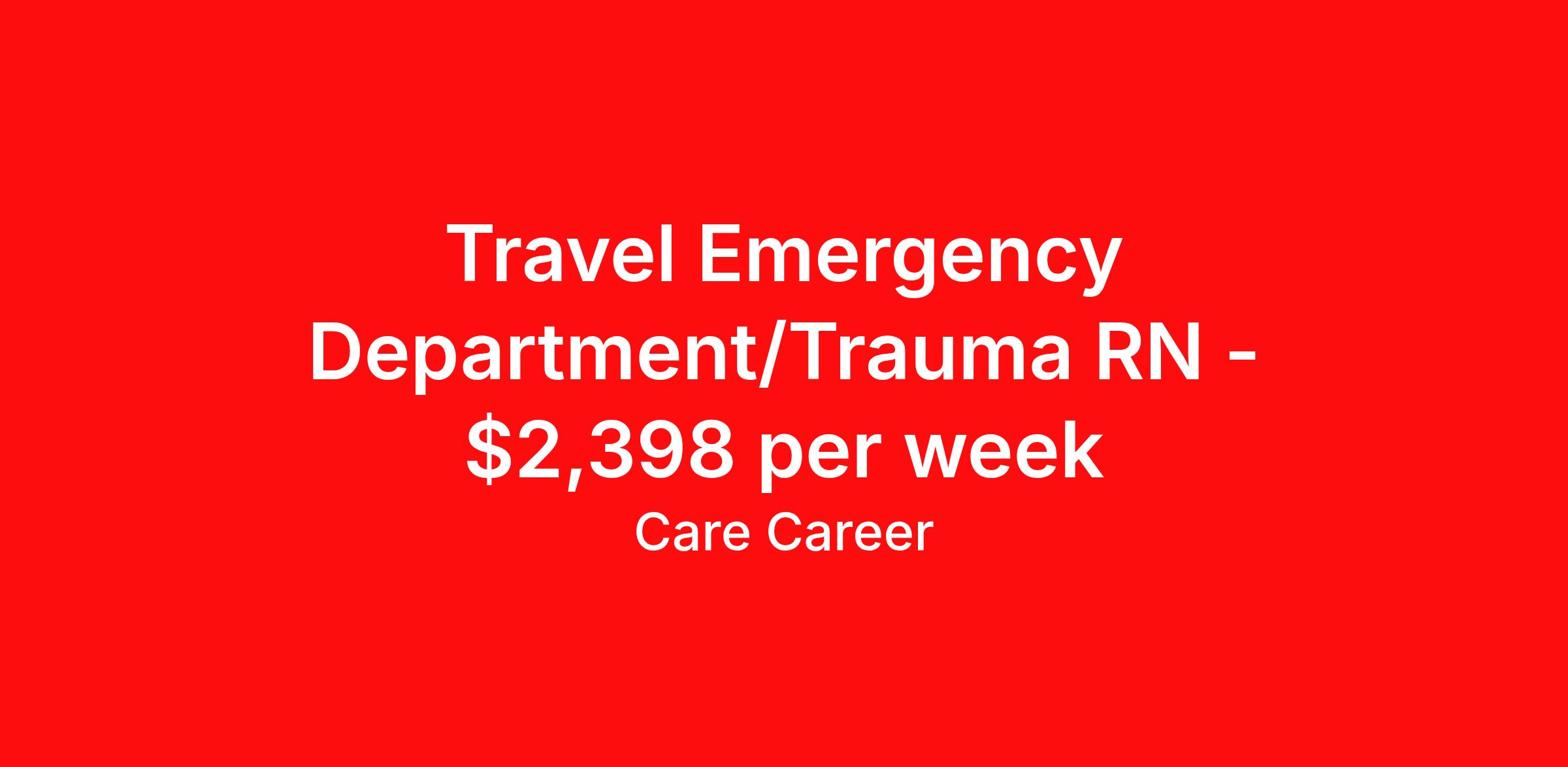 Travel Emergency Department/Trauma RN - $2,398 per week