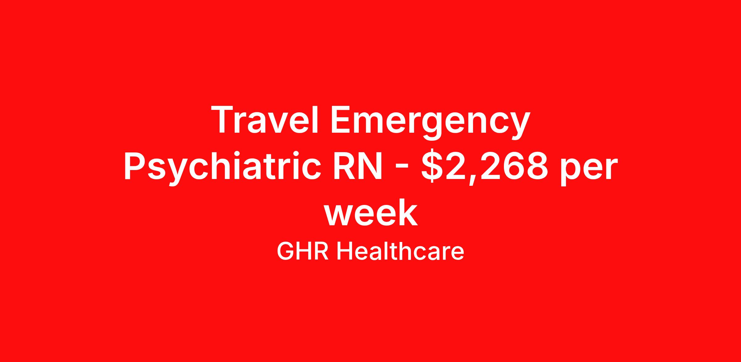 GHR Healthcare is seeking a travel nurse RN Psychiatric for a travel nursing job in Lewiston, Maine. Job Description & Requirements Specialty: Psychiatric Discipline: RN Start Date: 04/06/2026 Duration: 13 weeks 36 hours per week Shift: 12 hours Employment Type: Travel GHR Healthcare Job ID 76411963. Pay package is based on 12 hour shifts and 36 hours per week (subject to confirmation) with tax-free stipend amount to be determined. About GHR Healthcare For over 30 years, GHR Healthcare has been the bridge between healthcare professionals and the facilities that need them nationwide. We're committed to uncovering your ideal fit, supported by GHR's dedication to competitive compensation, transparent communication, and a devoted team that genuinely cares about your career journey. You can trust us to stand by your side as your advocate, confidante, and partner in advancing your career. At GHR, care and consideration are at the heart of everything we do. Visit ghrhealthcare.com to learn more.