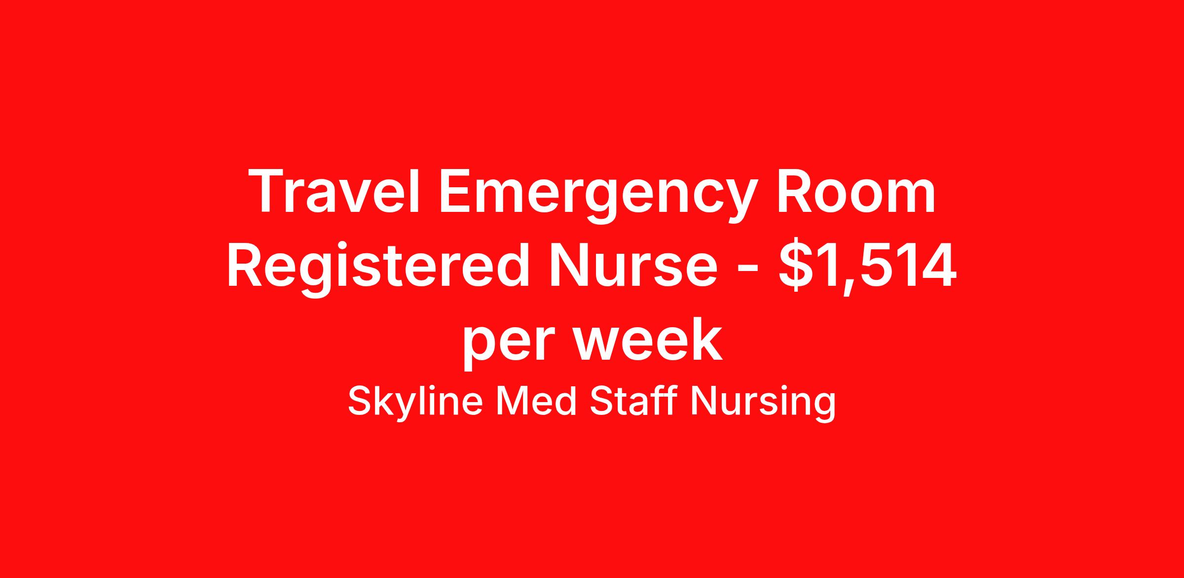Skyline Med Staff Nursing is seeking a travel nurse RN ED - Emergency Department for a travel nursing job in Augusta, Georgia. Job Description & Requirements Specialty: ED - Emergency Department Discipline: RN Start Date: 04/13/2026 Duration: 14 weeks 36 hours per week Shift: 12 hours, days Employment Type: Travel Weekly amount stated in job postings is an estimate based on estimated hourly wage and potential stipends available for the location of the assignment. Pay package is calculated on bill rate at the time job was posted, but can change or vary without notice. Exact pay packages might vary as this is an estimate. Our recruiter would be happy to build an exact pay package for you for each job. Skyline Med Staff Nursing Job ID 36119805. Pay package is based on 12 hour shifts and 36.0 hours per week (subject to confirmation) with tax-free stipend amount to be determined. Posted job title: RN:ER,07:00:00-19:00:00 About Skyline Med Staff Nursing Join the Top- Rated Travel Healthcare Team! Skyline Med Staff was named as the 1 Best Travel Healthcare Company in 2025 by BluePipes, a recognition driven by glowing reviews from travel healthcare professionals. Our recruiters are consistently praised on Google for their responsiveness, dedication, accessibility, and industry knowledge. Ready to experience the difference? Apply for a job today and see why healthcare professionals choose Skyline! Certified Women Owned Business We believe that travel is good for the soul. We want to be on your journey with you and find the right job that fits you Skyline Med Staff is committed to one vision treating others the way that THEY want to be treated. The executive team at Skyline Med Staff focuses on a commitment to quality, consistency, and the highest level of service. Our team members continually strive to build long term relationships that center on you and helping you achieve your goals. Some of the Benefits you will receive with Skyline Med Staff: Over 30 years of combined experience in the staffing industry Higher Take-Home Pay Rates Dedicated Personal Recruiter We are available to you 24/7 Health Insurance Plan Options Tax Free Per Diems, Housing Stipends and Travel Reimbursements Joint Commission Certified Contracts in all 50 states Referral and Loyalty Bonuses Benefits Medical benefits Referral bonus