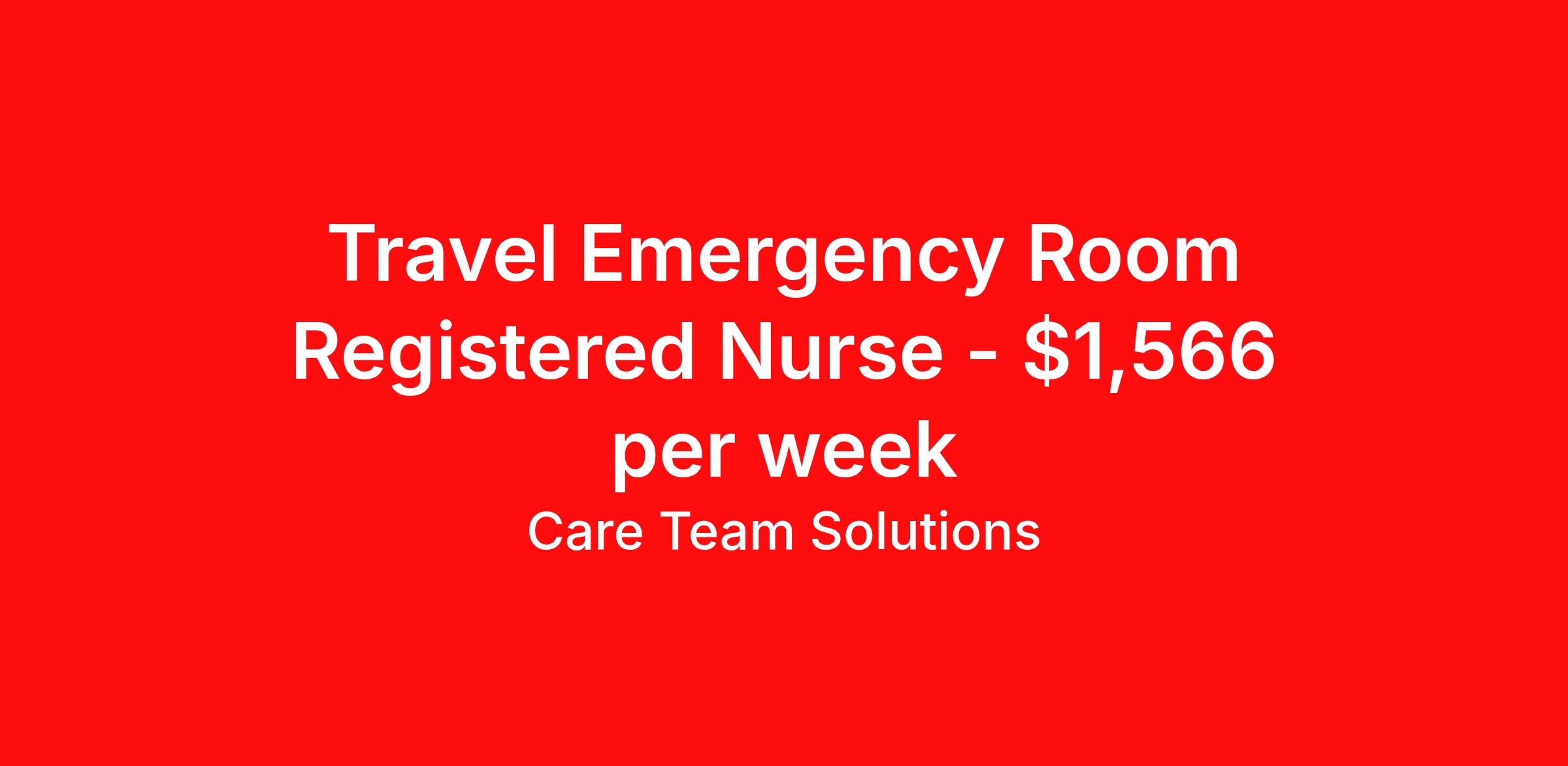 Care Team Solutions is seeking a travel nurse RN ED - Emergency Department for a travel nursing job in Augusta, Georgia. Job Description & Requirements Specialty: ED - Emergency Department Discipline: RN Start Date: 03/23/2026 Duration: 13 weeks 36 hours per week Shift: 12 hours Employment Type: Travel Registered Nurse must have 2 years of recent experience in particular specialty Details: Must Have 2 Years of recent Emergency Room experience. Specialty: Emergency Room Discipline: Registered Nurse Start Date: 2026-03-23 Duration: 14 Weeks Shift: 12 Hours Day shift Hours Per Week: 36 Hours Employment Type: Contract Gross Weekly Pay: $1566.16 Six things that won’t happen if you apply to this job: You won’t have to guess what the downsides are. We’ll tell you up front. You won’t show up on day 1 and find out this is not what you signed up for. We won't leave your phone call ringing when it's inconvenient. Business hours for you are business hours for us. You won’t get shuffled to some customer service rep when a problem pops up. If we screw up something in securing your placement, we'll own it. That means it's on us to make it right. You won’t figure out your credentials alone. Our credentialing experts will walk you through it step by step. We've talked to thousands of travel nurses like you. We know you want good pay. You want to choose when you work. But the one thing nurse after nurse has said they want and don't have is someone in their corner. There's a lot in this business that’s messed up. We’re trying to be the people that fix it. You and every nurse with the guts to travel deserve it. We've worked hard for you to enjoy some one-of-a-kind benefits you'll not likely find anywhere else, because they benefit you more than they benefit us: Our early pay program Student loan reimbursement Free well-being tele-visits with a psychologist Care Team Solutions Job ID 586220. Pay package is based on 12 hour shifts and 36 hours per week (subject to confirmation) with tax-free stipend amount to be determined. Posted job title: ER Registered Nurse About Care Team Solutions Two brothers who give an enormous damn. We're Justin and Kyle. Neither of us are nurses. It doesn’t take a nurse to see that the way travel nurses are treated sucks. Nursing is already hard enough. Travel nursing takes serious guts. You get the toughest assignments in places you’ve never been. Which can be fun, but it’s also stressful. You’re in your element but outside of your hometown. You can be a stranger on the team. If anyone deserves someone in their corner, it’s you. But that’s not how most agencies operate. Which is why travel nurses hate working with them. We got into this business because we saw bucket-loads of nurses moving through the "churn and burn" travel machinery. We absolutely hate that. You'll do your best work when you have the placements you want and feel fully supported in your work. We pay our people well because we want them to treat you well. Our recruiters are amazing (we picked each of them ourselves), but if you've got a problem too big for them, they can come straight to us. We work like ten feet away. The "Churners and Burners" promise you the same benefits. They might as well copy/paste them from each other. We have them too: 401k, holiday pay, healthcare, dental, travel reimbursement, etc But we've worked hard for you to enjoy some one-of-a-kind benefits you'll not likely find anywhere else, because they benefit you more than they benefit us: Our early pay program Student loan reimbursement Free well-being tele-visits with a psychologist Benefits Weekly pay Holiday Pay Guaranteed Hours 401k retirement plan Wellness and fitness programs Referral bonus Medical benefits Dental benefits Vision benefits School loan reimbursement