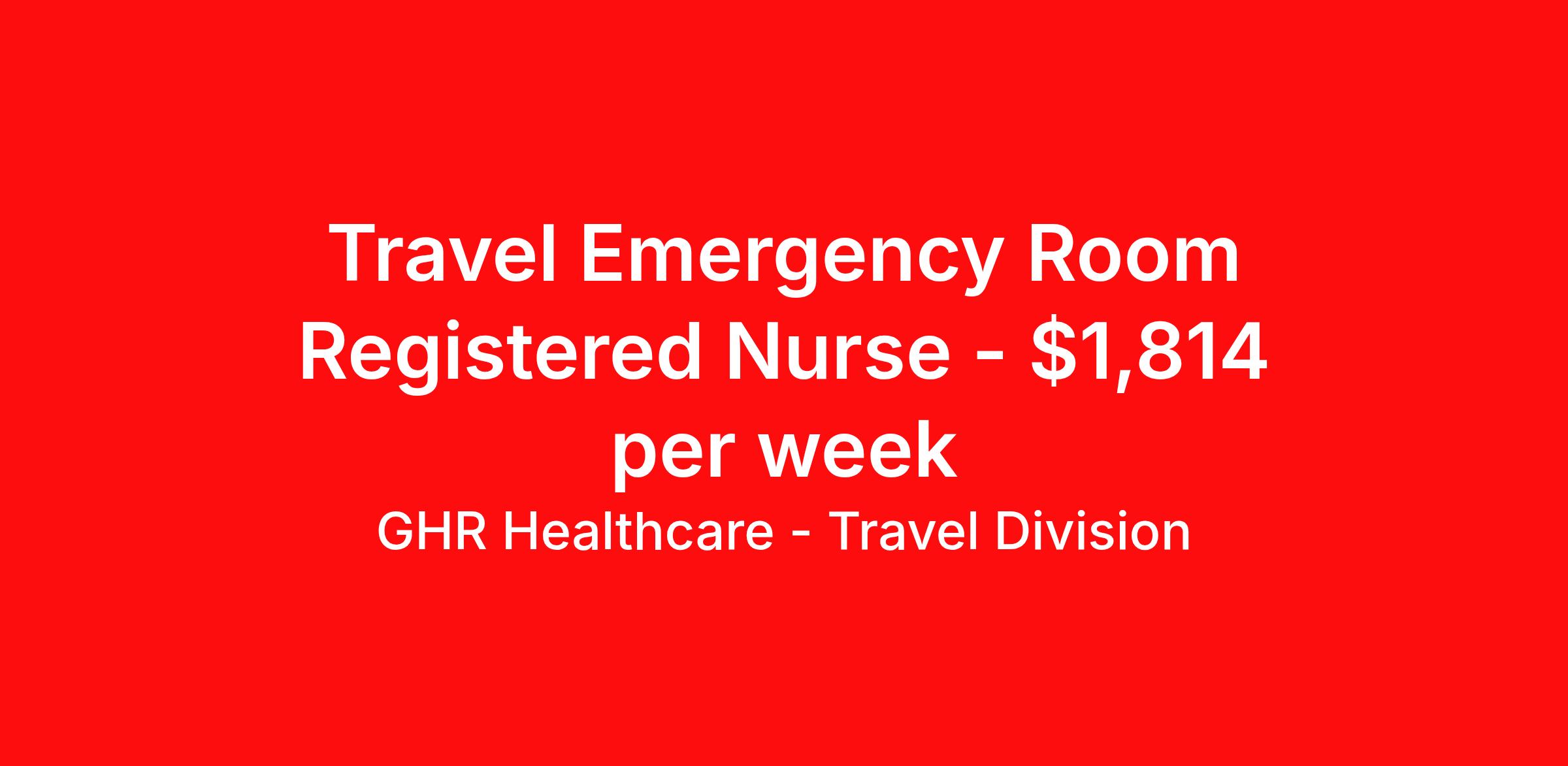 GHR Healthcare - Travel Division is seeking a travel nurse RN ED - Emergency Department for a travel nursing job in Tulsa, Oklahoma. Job Description & Requirements Specialty: ED - Emergency Department Discipline: RN Start Date: 04/06/2026 Duration: 13 weeks 36 hours per week Shift: 12 hours Employment Type: Travel GHR Healthcare - Travel Division Job ID 76376921. Pay package is based on 12 hour shifts and 36 hours per week (subject to confirmation) with tax-free stipend amount to be determined. About GHR Healthcare - Travel Division For over 30 years, GHR Healthcare has been the bridge between healthcare professionals and the facilities that need them nationwide. We're committed to uncovering your ideal fit, supported by GHR's dedication to competitive compensation, transparent communication, and a devoted team that genuinely cares about your career journey. You can trust us to stand by your side as your advocate, confidante, and partner in advancing your career. At GHR, care and consideration are at the heart of everything we do. Visit ghrhealthcare.com to learn more.