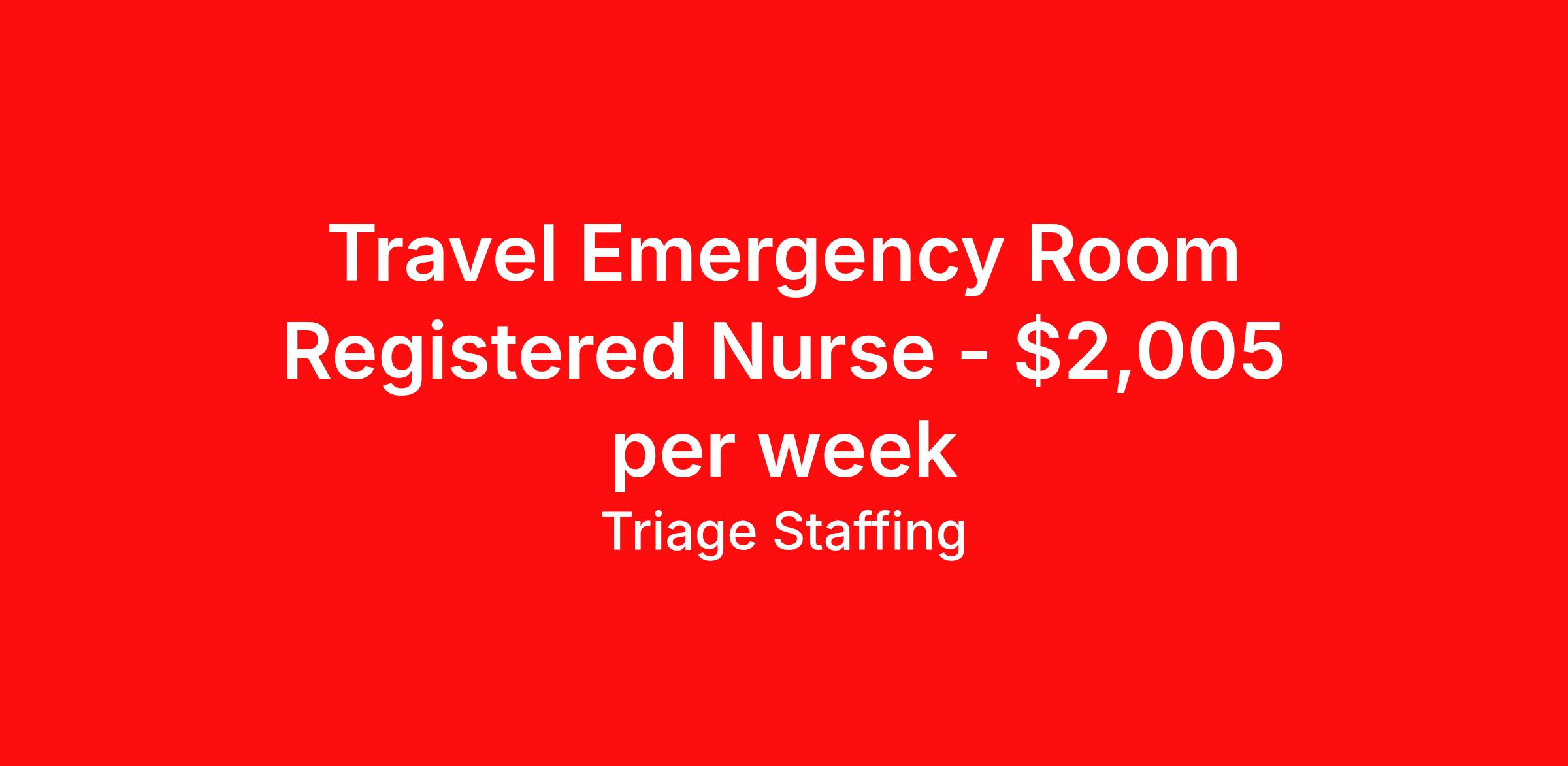 Triage Staffing is seeking a travel nurse RN ED - Emergency Department for a travel nursing job in Albany, Georgia. Job Description & Requirements Specialty: ED - Emergency Department Discipline: RN Start Date: 03/30/2026 Duration: 17 weeks 36 hours per week Shift: 12 hours, nights Employment Type: Travel Travel Nursing: Emergency Department Albany, GA Location: Albany, GA Start Date: 3/30/2026 Shift Details: 12H Nights 36 hours per week Length: 17 WEEKS Apply for specific facility details.ER RN Triage Staffing Job ID UEXTCXDT. Posted job title: Nursing: Emergency Department About Triage Staffing At Triage, we prefer to be real . Real about expectations—both ours and yours. Real about how a decision you make today could affect your tomorrows. Real about how compensation actually works. Real about how great—or grating—your next supervisor may be. Being real allows everyone at Triage to be ready . Ready to serve you with real honesty. So if that gig near the ocean is really no day at the beach, or that third shift comes with a second-class rate, we tell you. So you can be ready, too. We staff all five major divisions of acute care—nursing, lab, radiology, cardiopulmonary and rehab therapy, offering: - Competitive, custom pay packages - One point of contact for both travelers and facilities (per division) - A reliable recruiter who's got your back throughout your entire assignment - In-house compliance and accounting specialists - A clinical liaison team available 24/7 to offer medical and professional support and career development - A mentoring program that is run and managed by actual clinicians—yeah, you read that right - And more (because of course there’s more) Are we the biggest? No. Are we the best? That’s rather subjective, but we’re trying to be. Will we work like hell to get you as close to your idea of heaven as possible? Yes. Yes, we will. Benefits: Day One comprehensive, nationwide insurance plans for health, vision and dental and life—including a HSA option Day One 401(k) program with employer-matching contributions once eligible Facility cancelling protection—your time is money on and off-the-clock Guaranteed hours Weekly paychecks via direct deposit Earned vacation bonuses for time worked Paid holidays Employee assistance program (EAP)—your mental health is important, too Continuing education, certification and licensing reimbursement Workers comp—because accidents happen Top-rated professional liability insurance Company provided housing options Referral bonus—$750 in your pocket after they’ve completed a 13-week assignment
