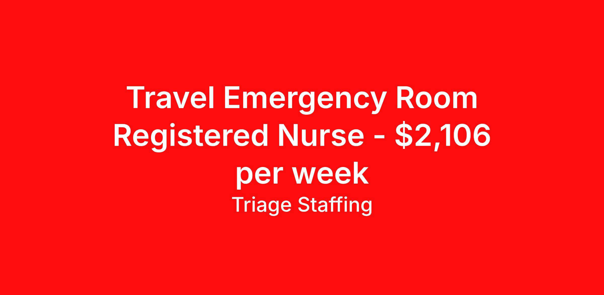 Triage Staffing is seeking a travel nurse RN ED - Emergency Department for a travel nursing job in Richmond, Virginia. Job Description & Requirements Specialty: ED - Emergency Department Discipline: RN Start Date: 04/13/2026 Duration: 13 weeks 36 hours per week Shift: 12 hours, flexible Employment Type: Travel Travel Nursing: Emergency Department Richmond Location: Richmond Start Date: 4/13/2026 Shift Details: 12H Variable 36 hours per week Length: 13 WEEKS Apply for specific facility details.ER RN Triage Staffing Job ID YH63XECY. Posted job title: Nursing: Emergency Department About Triage Staffing At Triage, we prefer to be real . Real about expectations—both ours and yours. Real about how a decision you make today could affect your tomorrows. Real about how compensation actually works. Real about how great—or grating—your next supervisor may be. Being real allows everyone at Triage to be ready . Ready to serve you with real honesty. So if that gig near the ocean is really no day at the beach, or that third shift comes with a second-class rate, we tell you. So you can be ready, too. We staff all five major divisions of acute care—nursing, lab, radiology, cardiopulmonary and rehab therapy, offering: - Competitive, custom pay packages - One point of contact for both travelers and facilities (per division) - A reliable recruiter who's got your back throughout your entire assignment - In-house compliance and accounting specialists - A clinical liaison team available 24/7 to offer medical and professional support and career development - A mentoring program that is run and managed by actual clinicians—yeah, you read that right - And more (because of course there’s more) Are we the biggest? No. Are we the best? That’s rather subjective, but we’re trying to be. Will we work like hell to get you as close to your idea of heaven as possible? Yes. Yes, we will. Benefits: Day One comprehensive, nationwide insurance plans for health, vision and dental and life—including a HSA option Day One 401(k) program with employer-matching contributions once eligible Facility cancelling protection—your time is money on and off-the-clock Guaranteed hours Weekly paychecks via direct deposit Earned vacation bonuses for time worked Paid holidays Employee assistance program (EAP)—your mental health is important, too Continuing education, certification and licensing reimbursement Workers comp—because accidents happen Top-rated professional liability insurance Company provided housing options Referral bonus—$750 in your pocket after they’ve completed a 13-week assignment
