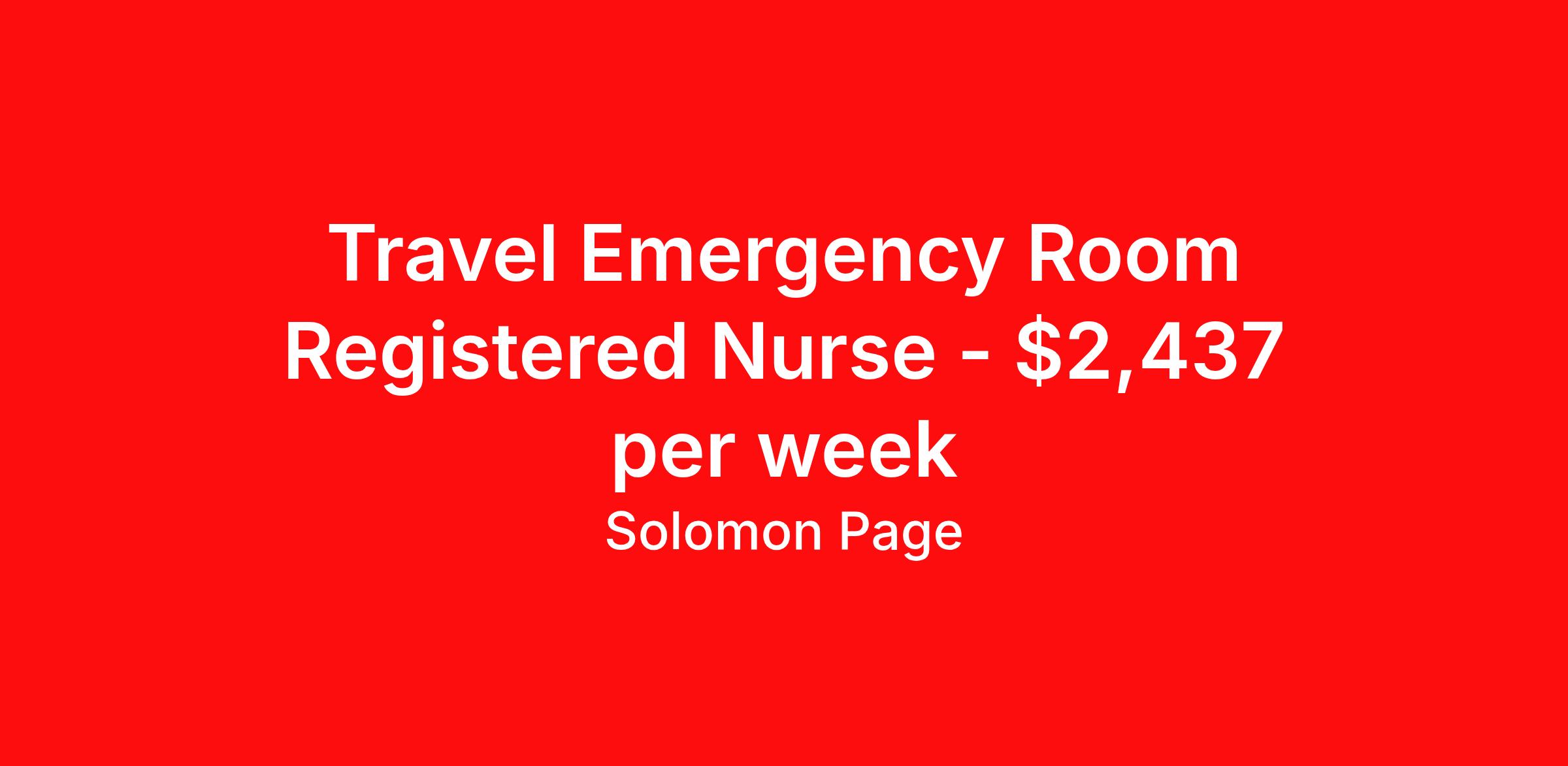 Travel Emergency Room Registered Nurse - $2,437 per week
