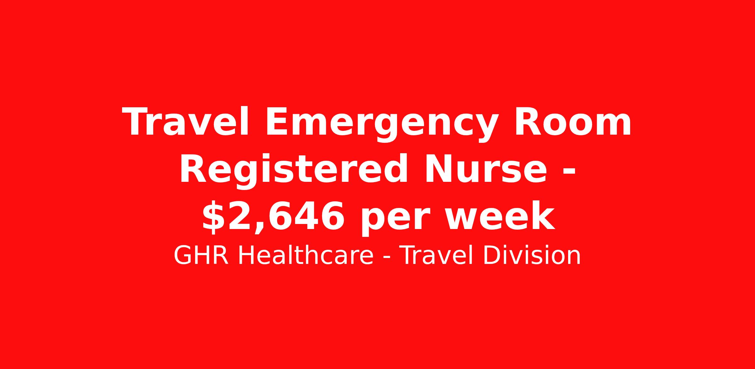 GHR Healthcare - Travel Division is seeking a travel nurse RN ED - Emergency Department for a travel nursing job in Middlebury, Vermont. Job Description & Requirements Specialty: ED - Emergency Department Discipline: RN Start Date: ASAP Duration: 16 weeks 36 hours per week Shift: 12 hours Employment Type: Travel GHR Healthcare - Travel Division Job ID 75228786. Pay package is based on 12 hour shifts and 36 hours per week (subject to confirmation) with tax-free stipend amount to be determined. About GHR Healthcare - Travel Division For over 30 years, GHR Healthcare has been the bridge between healthcare professionals and the facilities that need them nationwide. We're committed to uncovering your ideal fit, supported by GHR's dedication to competitive compensation, transparent communication, and a devoted team that genuinely cares about your career journey. You can trust us to stand by your side as your advocate, confidante, and partner in advancing your career. At GHR, care and consideration are at the heart of everything we do. Visit ghrhealthcare.com to learn more.
