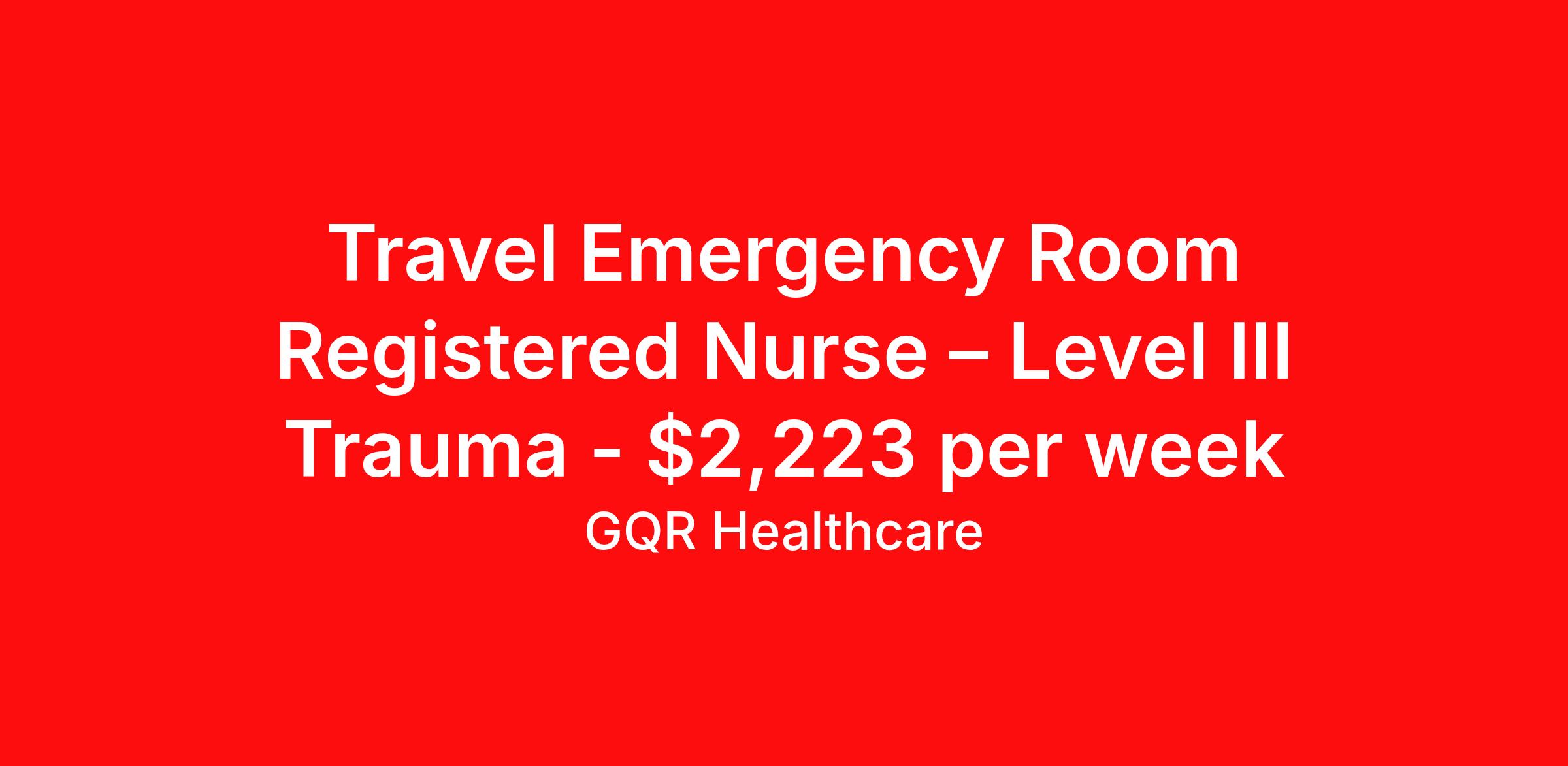 Travel Emergency Room Registered Nurse – Level III Trauma - $2,223 per week