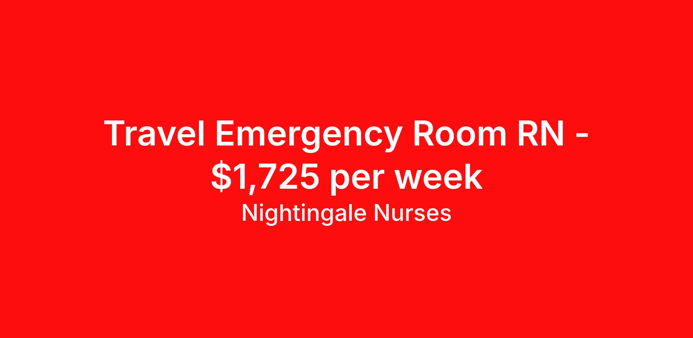 Nightingale Nurses is seeking a travel nurse RN ED - Emergency Department for a travel nursing job in Fort Lauderdale, Florida. Job Description & Requirements Specialty: ED - Emergency Department Discipline: RN Start Date: 04/21/2026 Duration: 13 weeks 36 hours per week Shift: 12 hours, nights Employment Type: Travel About Nightingale Nurses the first name in travel nursing You may not realize it, but as an RN with real world hospital experience, you are legendary. To the lives you’ve helped save, the patients you’ve cared for, and to the hospitals where you’ve done it. And you’re just getting started. Legendary is where Nightingale begins. We’re the first name in travel nursing, representing only the very best RNs. That’s why hospitals prefer us, allowing us to offer exceptional travel nursing assignments all over the US, as well as the highest pay rates and most extensive benefits in the industry. Nightingale facilitates every aspect of your travel nursing assignment, so you can focus on doing what you do best. We want you to grow, explore, and enjoy unrivaled liberty, the freedom to nurse.