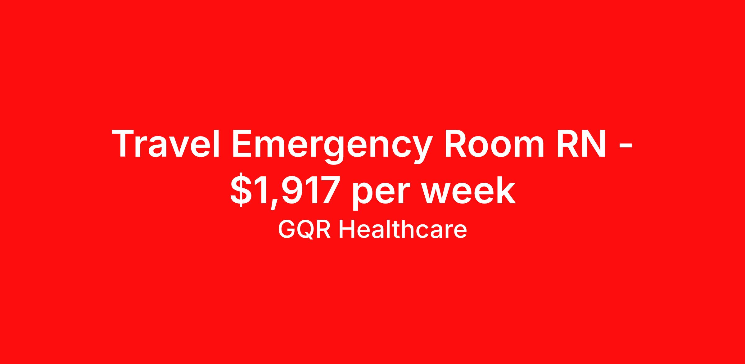 GQR Healthcare is seeking a travel nurse RN ED - Emergency Department for a travel nursing job in Templeton, California. Job Description & Requirements Specialty: ED - Emergency Department Discipline: RN Start Date: 04/13/2026 Duration: 13 weeks 36 hours per week Shift: 12 hours, nights Employment Type: Travel Contract - W2 Emergency Room (ER) Registered Nurse (RN) Job Location: Templeton, California Start Date: April 13, 2026 Profession: Registered Nurse (RN) Facility: Estimated Pay: $1917.11 - $2012.11 Duration:13 weeks Specialty:Emergency Room (ER) Shift: Night Shift Details: null Night Job Type: Travel *Estimated weekly pay includes projected hourly wages and weekly meal and lodging per diems for eligible clinicians based on nationally published GSA rates. Actual weekly pay and per diems may differ from the amount shown and are subject to change during an assignment. Benefits: Day 1 Insurance Cigna medical, MetLife dental and vision insurance License reimbursement for new licenses needed for each assignment Discounts with hotels and rental cars A dedicated recruiter and support team that will help you every step of the way to sure you start on time and have an exceptional experience Referral bonus up to $700 About the Company: Finding the right role is about more than just matching skills to a job—it’s about aligning with your goals, values, and the way you want to work. As an award-winning talent partner, we support healthcare professionals through every step of that process, offering meaningful opportunities, clear guidance, and long-term partnership. From our first conversation to your first day on the job (and beyond!), we’re here to help you move forward with confidence. GQR Job ID 789376. Pay package is based on 12 hour shifts and 36 hours per week (subject to confirmation) with tax-free stipend amount to be determined. Posted job title: Registered Nurse (RN) About GQR Healthcare GQR’s Healthcare team specializes in connecting experts within the industry to highly skilled healthcare professionals across the US market. In the competitive healthcare market, we recognize that the industry’s common goals of improved quality of care and patient outcomes are wholly reliant upon the professionals directly supporting these initiatives. Leveraging our extensive candidate network, we deliver continuity of care for the communities our partners serve to ensure the patient experience is of the highest quality. Through deep market specialization and a unique approach to talent acquisition, GQR Healthcare provides an unparalleled and personalized experience across all medical specialties in nursing and within diverse healthcare platforms across the industry.