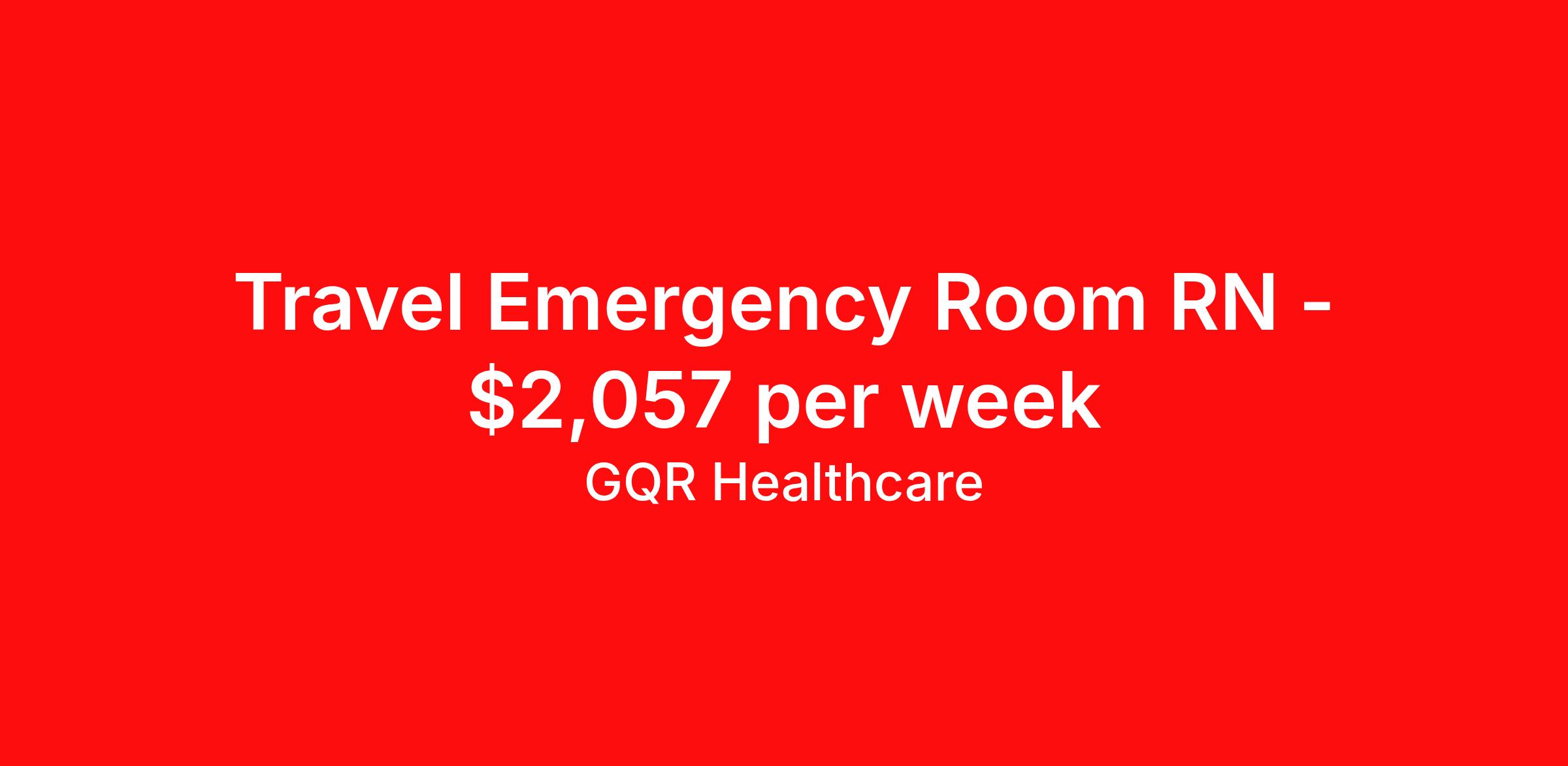 GQR Healthcare is seeking a travel nurse RN ED - Emergency Department for a travel nursing job in Laurium, Michigan. Job Description & Requirements Specialty: ED - Emergency Department Discipline: RN Start Date: 04/06/2026 Duration: 13 weeks 36 hours per week Shift: 12 hours, nights Employment Type: Travel Contract - W2 Emergency Room (ER) Registered Nurse (RN) Job Location: Laurium, Michigan Start Date: April 6, 2026 Profession: Registered Nurse (RN) Facility: Estimated Pay: $2056.72 - $2151.72 Duration:13 weeks Specialty:Emergency Room (ER) Shift: Night Shift Details: null Night Job Type: Travel *Estimated weekly pay includes projected hourly wages and weekly meal and lodging per diems for eligible clinicians based on nationally published GSA rates. Actual weekly pay and per diems may differ from the amount shown and are subject to change during an assignment. Benefits: Day 1 Insurance Cigna medical, MetLife dental and vision insurance License reimbursement for new licenses needed for each assignment Discounts with hotels and rental cars A dedicated recruiter and support team that will help you every step of the way to sure you start on time and have an exceptional experience Referral bonus up to $700 About the Company: Finding the right role is about more than just matching skills to a job—it’s about aligning with your goals, values, and the way you want to work. As an award-winning talent partner, we support healthcare professionals through every step of that process, offering meaningful opportunities, clear guidance, and long-term partnership. From our first conversation to your first day on the job (and beyond!), we’re here to help you move forward with confidence. GQR Job ID 788165. Pay package is based on 12 hour shifts and 36 hours per week (subject to confirmation) with tax-free stipend amount to be determined. Posted job title: Registered Nurse (RN) About GQR Healthcare GQR’s Healthcare team specializes in connecting experts within the industry to highly skilled healthcare professionals across the US market. In the competitive healthcare market, we recognize that the industry’s common goals of improved quality of care and patient outcomes are wholly reliant upon the professionals directly supporting these initiatives. Leveraging our extensive candidate network, we deliver continuity of care for the communities our partners serve to ensure the patient experience is of the highest quality. Through deep market specialization and a unique approach to talent acquisition, GQR Healthcare provides an unparalleled and personalized experience across all medical specialties in nursing and within diverse healthcare platforms across the industry.