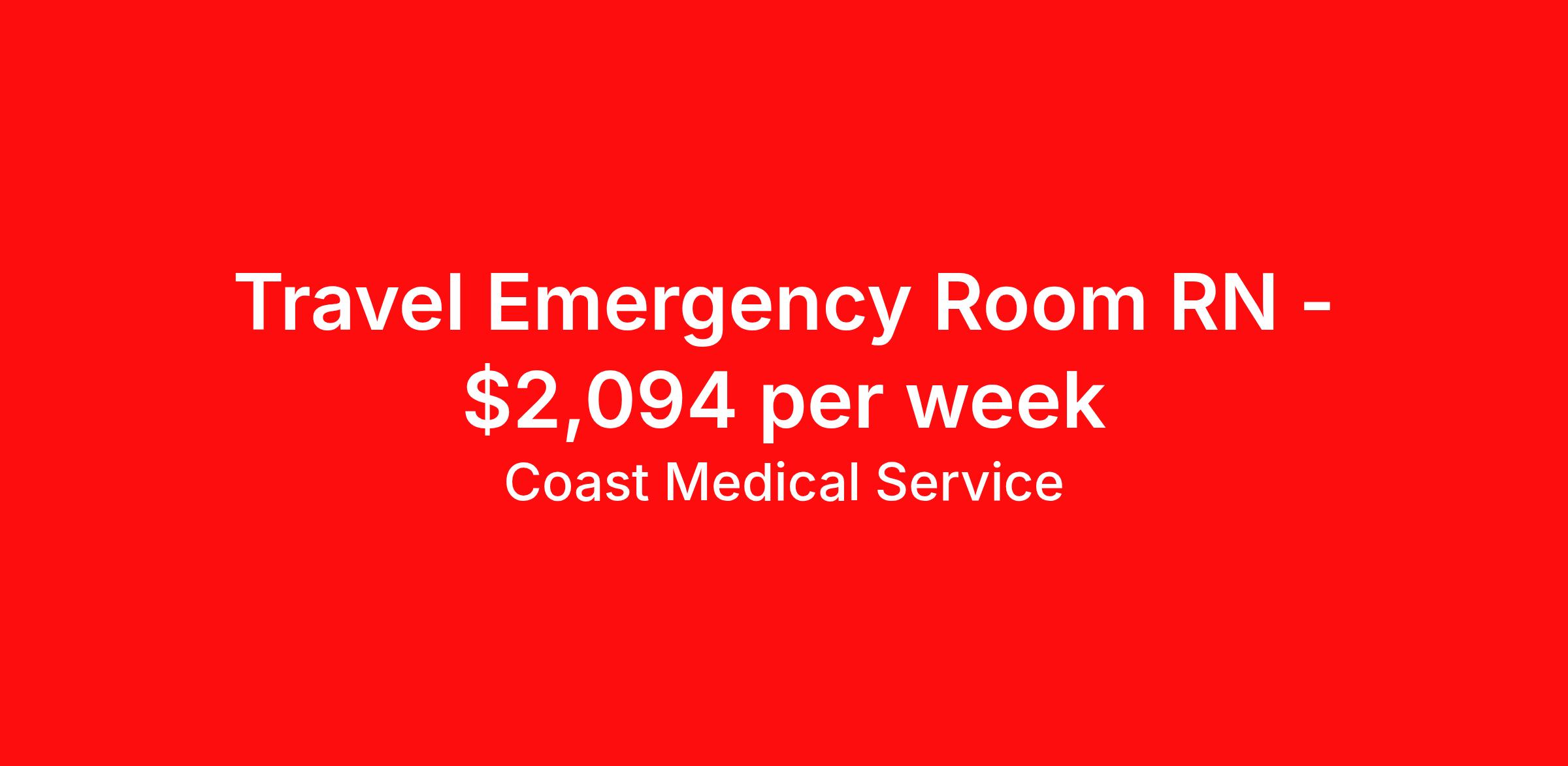 Coast Medical Service is seeking a travel nurse RN ED - Emergency Department for a travel nursing job in Templeton, California. Job Description & Requirements Specialty: ED - Emergency Department Discipline: RN Start Date: ASAP Duration: 13 weeks 36 hours per week Shift: 12 hours, rotating Employment Type: Travel Coast Medical Service is a nationwide travel nursing & allied healthcare staffing agency dedicated to providing an elite traveler experience for the experienced or first-time traveler. Coast is featured on Blue Pipes' 2023 Best Travel Agencies and named a 2022 Top Rated Healthcare Staffing Firm & 2023 First Half Top Rated Healthcare Staffing Firm by Great Recruiters. Please note that pay rate may differ for locally based candidates. Please apply here or contact a recruiter directly to learn more about this position & the facility, and/or explore others that may be of interest to you. We look forward to speaking with you! Coast Medical Services Job ID 36157925. Pay package is based on 12 hour shifts and 36.0 hours per week (subject to confirmation) with tax-free stipend amount to be determined. Posted job title: RN:Emergency Room,07:00:00-19:00:00