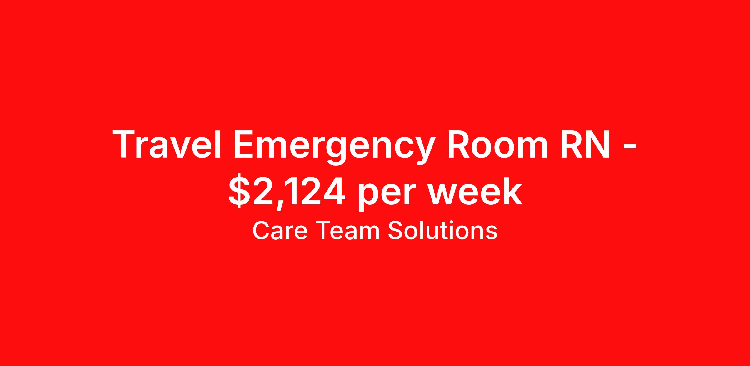 Care Team Solutions is seeking a travel nurse RN ED - Emergency Department for a travel nursing job in Boston, Massachusetts. Job Description & Requirements Specialty: ED - Emergency Department Discipline: RN Start Date: 04/12/2026 Duration: 13 weeks 36 hours per week Shift: 12 hours Employment Type: Travel Registered Nurse must have 2 years of recent experience in particular specialty Details: Must Have 2 Years of recent Emergency Room experience. Specialty: Emergency Room Discipline: Registered Nurse Start Date: 2026-04-12 Duration: 13 Weeks Shift: Hours Overnight shift. Hours Per Week: 36 Hours Employment Type: Contract Gross Weekly Pay: $2123.82 Six things that won’t happen if you apply to this job: You won’t have to guess what the downsides are. We’ll tell you up front. You won’t show up on day 1 and find out this is not what you signed up for. We won't leave your phone call ringing when it's inconvenient. Business hours for you are business hours for us. You won’t get shuffled to some customer service rep when a problem pops up. If we screw up something in securing your placement, we'll own it. That means it's on us to make it right. You won’t figure out your credentials alone. Our credentialing experts will walk you through it step by step. We've talked to thousands of travel nurses like you. We know you want good pay. You want to choose when you work. But the one thing nurse after nurse has said they want and don't have is someone in their corner. There's a lot in this business that’s messed up. We’re trying to be the people that fix it. You and every nurse with the guts to travel deserve it. We've worked hard for you to enjoy some one-of-a-kind benefits you'll not likely find anywhere else, because they benefit you more than they benefit us: Our early pay program Student loan reimbursement Free well-being tele-visits with a psychologist Care Team Solutions Job ID 583761. Pay package is based on 12 hour shifts and 36 hours per week (subject to confirmation) with tax-free stipend amount to be determined. Posted job title: ED RN - D/N Rotating - Apply candidates with last name A-L - 4/12/2026 start only About Care Team Solutions Two brothers who give an enormous damn. We're Justin and Kyle. Neither of us are nurses. It doesn’t take a nurse to see that the way travel nurses are treated sucks. Nursing is already hard enough. Travel nursing takes serious guts. You get the toughest assignments in places you’ve never been. Which can be fun, but it’s also stressful. You’re in your element but outside of your hometown. You can be a stranger on the team. If anyone deserves someone in their corner, it’s you. But that’s not how most agencies operate. Which is why travel nurses hate working with them. We got into this business because we saw bucket-loads of nurses moving through the "churn and burn" travel machinery. We absolutely hate that. You'll do your best work when you have the placements you want and feel fully supported in your work. We pay our people well because we want them to treat you well. Our recruiters are amazing (we picked each of them ourselves), but if you've got a problem too big for them, they can come straight to us. We work like ten feet away. The "Churners and Burners" promise you the same benefits. They might as well copy/paste them from each other. We have them too: 401k, holiday pay, healthcare, dental, travel reimbursement, etc But we've worked hard for you to enjoy some one-of-a-kind benefits you'll not likely find anywhere else, because they benefit you more than they benefit us: Our early pay program Student loan reimbursement Free well-being tele-visits with a psychologist Benefits Weekly pay Holiday Pay Guaranteed Hours 401k retirement plan Wellness and fitness programs Referral bonus Medical benefits Dental benefits Vision benefits School loan reimbursement