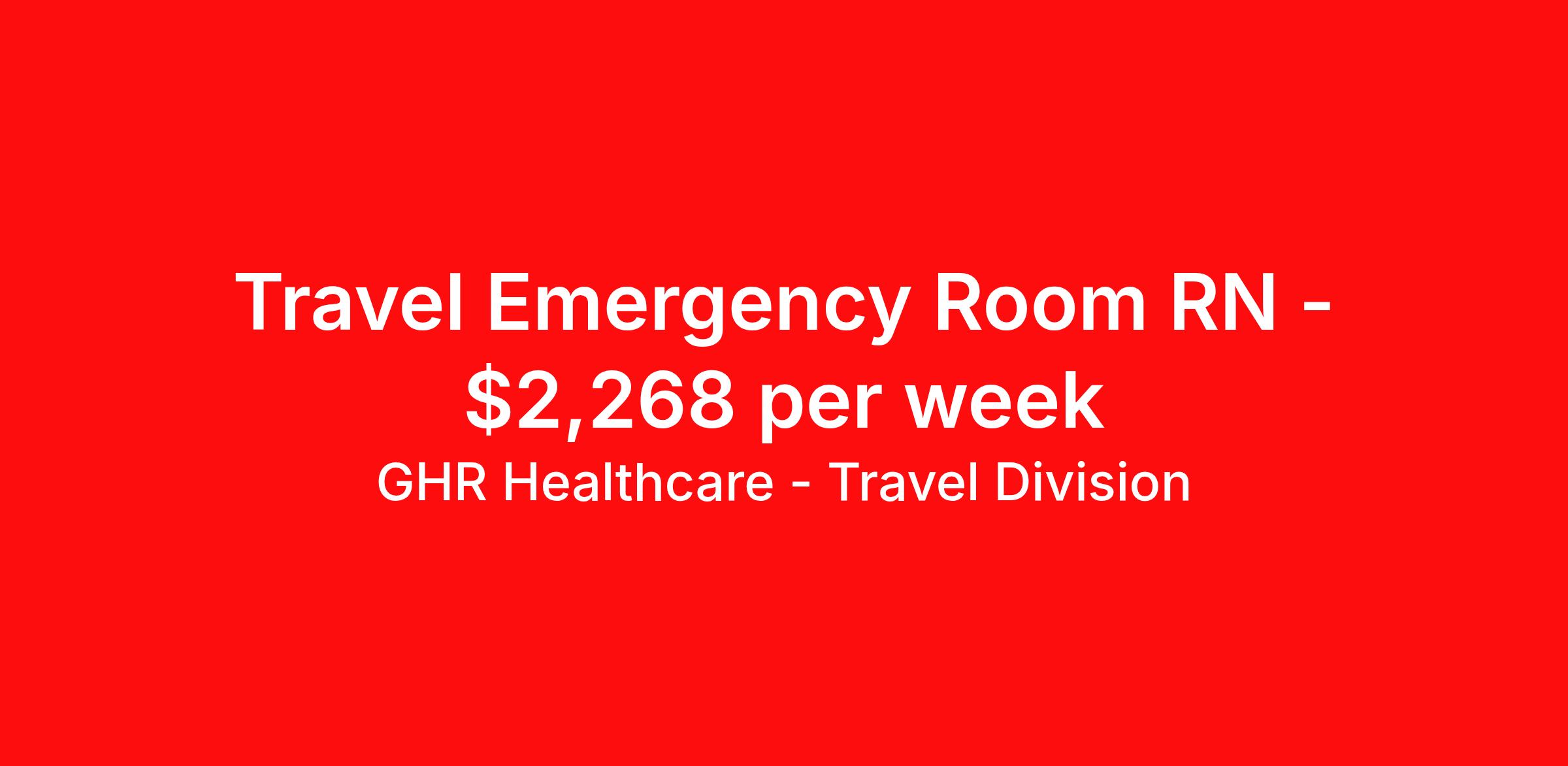 GHR Healthcare - Travel Division is seeking a travel nurse RN ED - Emergency Department for a travel nursing job in Boston, Massachusetts. Job Description & Requirements Specialty: ED - Emergency Department Discipline: RN Start Date: 04/12/2026 Duration: 12 weeks 36 hours per week Shift: 12 hours Employment Type: Travel GHR Healthcare - Travel Division Job ID 75843479. Pay package is based on 12 hour shifts and 36 hours per week (subject to confirmation) with tax-free stipend amount to be determined. About GHR Healthcare - Travel Division For over 30 years, GHR Healthcare has been the bridge between healthcare professionals and the facilities that need them nationwide. We're committed to uncovering your ideal fit, supported by GHR's dedication to competitive compensation, transparent communication, and a devoted team that genuinely cares about your career journey. You can trust us to stand by your side as your advocate, confidante, and partner in advancing your career. At GHR, care and consideration are at the heart of everything we do. Visit ghrhealthcare.com to learn more.