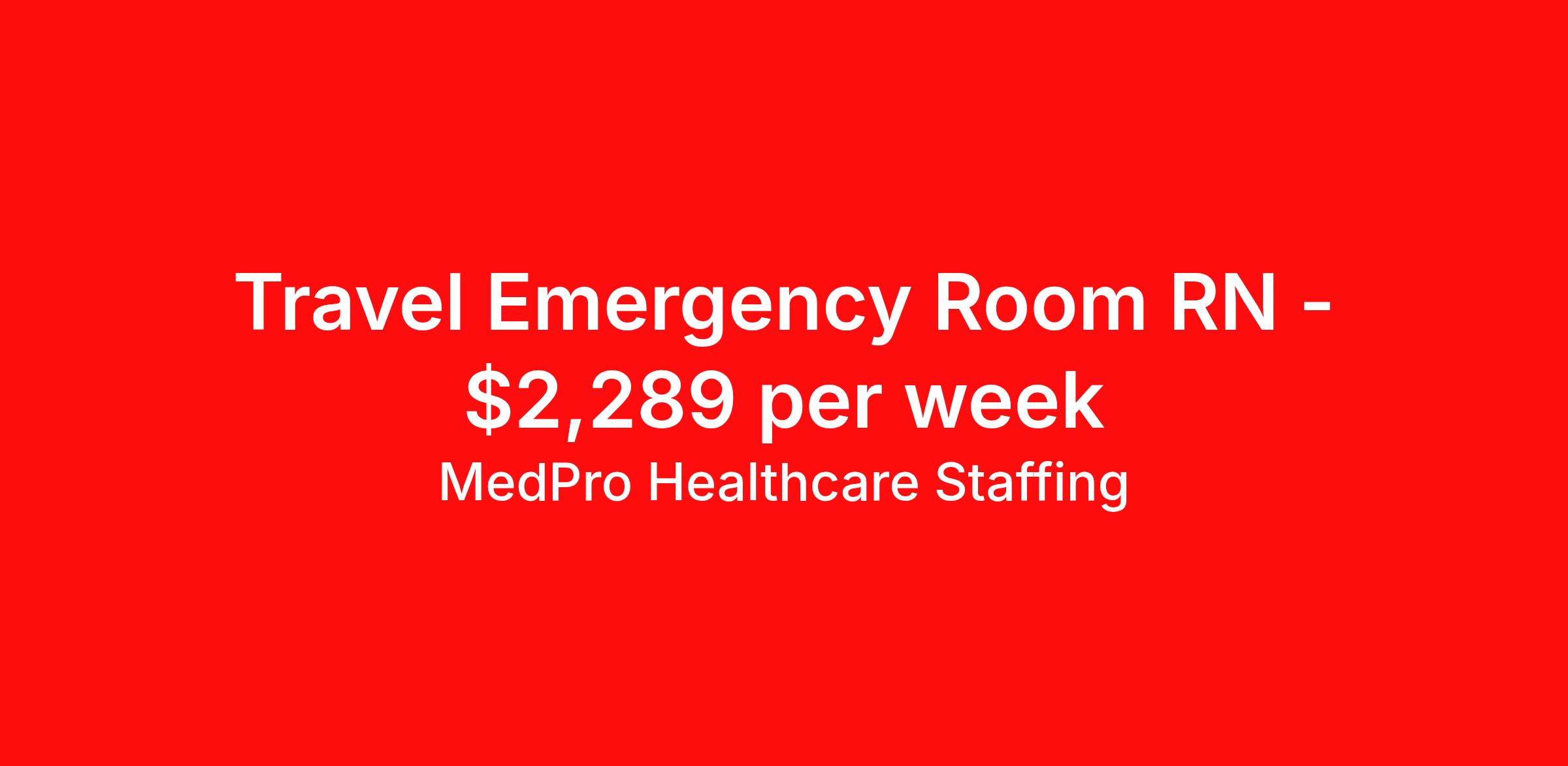 MedPro Healthcare Staffing is seeking a travel nurse RN ED - Emergency Department for a travel nursing job in Boston, Massachusetts. Job Description & Requirements Specialty: ED - Emergency Department Discipline: RN Start Date: 04/12/2026 Duration: 13 weeks 36 hours per week Shift: 12 hours, nights Employment Type: Travel MedPro Healthcare Staffing , a Joint Commission-certified staffing agency, is seeking a quality Registered Nurse - Emergency Room for a travel assignment with one of our top healthcare clients. Requirements Active RN License Degree from accredited nursing program BLS, ACLS, PALS & TNCC may be required in some positions Eighteen months of recent experience in an Acute Care Emergency Room setting Other requirements to be determined by our client facility Benefits Weekly pay and direct deposit Full coverage of all credentialing fees Private housing or housing allowance Group Health insurance for you and your family Company-paid life and disability insurance Travel reimbursement 401(k) matching Unlimited Referral Bonuses up to $1,000 Duties Responsibilities Emergency Room registered nurses (RN) provide care for patients from various types of illness or trauma requiring emergency attention and must be able to recognize and effectively treat life-threatening conditions Responsible for assessing, intervening and stabilizing a variety of trauma and illnesses with decisive action. Due to the range of medical conditions that may require urgent treatment and care, they must be knowledgeable about general as well as specific health issues. Properly understand triage in order to prioritize injuries based on medical need. Able to make quick and accurate assessments about incoming patients, including both physical and mental health conditions. About Agency MedPro Healthcare Staffing is a Joint Commission certified provider of contract staffing services. Since 1983, we have placed nursing and allied travelers in top healthcare facilities nationwide. Join us today for your very own MedPro Experience®. If qualified and interested, please call for immediate consideration. MedPro Staffing is an Equal Opportunity Employer. All applicants will be considered for employment without attention to race, color, religion, national origin, age, sex, disability, marital status or veteran status. Key Words: Emergency Room Nurse, RN-ER, Emergency Room, Critical Care, Emergency Department, ACLS, EKG, Travel Nurse, Contract Nurse, Agency Nurse, Travel Contract, ER-RN, RN-ED, Emergency Room Nursing, ED Nurse, ER positions, RN-ER positions, ER Contracts, Travel Nurse *Weekly payment estimates are intended for informational purposes only and include a gross estimate of hourly wages and reimbursements for meal, incidental, and housing expenses. Your recruiter will confirm your eligibility and provide additional details. MedPro Job ID a0Fcx00000EqWQMEA3. Pay package is based on 12 hour shifts and 36 hours per week (subject to confirmation) with tax-free stipend amount to be determined. Posted job title: Emergency Room Registered Nurse Nursing: Emergency Room. About MedPro Healthcare Staffing At MedPro Healthcare Staffing , we believe no one cares more for caregivers than we do. Our mission is simple: you focus on your patients, and we’ll take care of the rest. As a Joint Commission-certified leader in temporary and contract healthcare staffing since 1983, MedPro has proudly connected nursing and allied travelers with top healthcare facilities across the nation. With thousands of job opportunities available nationwide, we make it easy to find assignments that align with your goals and lifestyle. Our on-staff clinical support team—alongside a compassionate group of experienced recruiters—provides hands-on guidance every step of the way. From Day 1 medical benefits and a 401(k) plan to personalized career support, we’re committed to ensuring every professional we serve feels valued, cared for, and empowered to succeed. Guided by a CEO who is a Registered Nurse, MedPro is built on a foundation of clinical insight and genuine compassion for the caregiving community. Through The MedPro Experience® , we deliver travel assignments that are rewarding, memorable, and designed to help you DREAM big, EXPLORE often, and ACHIEVE greatness. Benefits Day 1 medical, dental, and vision benefits for you and your family Weekly pay and direct deposit Unlimited Referral Bonuses starting at $500 On Staff Clinical Support Team Access to nationwide travel assignments MPX Mobile app -24/7 real-time access to jobs, credentials, assignment details, and more Full coverage of all credentialing fees Private housing or housing allowance Tax Free Per Diems, Housing Stipends and Travel Reimbursements Company-paid life and disability insurance Travel reimbursement 401(k) matching Benefits Weekly pay Referral bonus Employee assistance programs