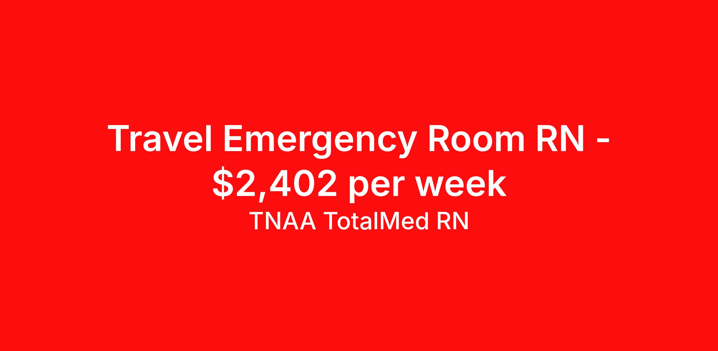 TNAA TotalMed RN is seeking a travel nurse RN ED - Emergency Department for a travel nursing job in Reno, Nevada. Job Description & Requirements Specialty: ED - Emergency Department Discipline: RN Duration: 13 weeks 36 hours per week Shift: 12 hours, nights Employment Type: Travel We're looking for Emergency Room RNs for an immediate travel nurse opening in Reno, NV. The right RN should have 1-2 years recent acute care experience. Read below for more requirements. As an ER Travel Nurse, you will work with a diverse team of caregivers to appropriately evaluate, triage and implement care using correct procedures and physician instructions. RNs should have experience and skill caring for patients in a fast-paced, urgent and emergency environment. Emergency Room RNs will perform minor medical operations, advise patients and family on illnesses or injuries, and plan long-term care needs. Other responsibilities as an ER Travel Nurse include documenting medical history, checking for any allergies patients might have, obtaining patient vital signs, and monitoring patients' emotional and physical well-being. As an ER Travel Nurse, you should be prepared to perform the following tasks: Provide basic bedside care. Clean and bandage wounds. Provide IV therapy. Maintain supplies and medical equipment. Report suspected abuse to appropriate agencies. ER Travel Nurses should be able to stand and walk for long periods of time, as well as bend, lean and stoop without difficulty. RNs should be able to easily lift 20 pounds. Moving or lifting of patients may require lifting of up to 50 pounds at times. Because of the fast-paced environment, Emergency Room RNs must possess good skills for coping with stress and be able to relate to people of all ages and backgrounds. Requirements*: BLS, ACLS, NIH, PALS, TNCC, 2 Years * Additional certifications may be required before beginning an assignment. TotalMed Travel Job ID 1409281. Pay package is based on 12 hour shifts and 36 hours per week (subject to confirmation) with tax-free stipend amount to be determined. Posted job title: Emergency Room - ER RN - Travel Nurse About TNAA TotalMed RN TotalMed is a Top Ten, travel nursing and healthcare staffing agency with the mission of igniting purpose in healthcare. The organization staffs nurses, therapists, pharmacists, and other clinicians of all specialties in all 50 states. They offer local and travel jobs and match caregivers with the right organization to assist both facilities and patients. As an organization, they focus on putting highly-skilled staff into facilities to ensure adequate staffing for a better patient experience. TotalMed specializes in recruiting and placing healthcare professionals in travel, PRN, and permanent positions across the country in Nursing and Allied Health. Throughout 2020, the organization filled roles at even the most short-staffed facilities during the most challenging time in healthcare. By matching the right travel healthcare professional with the right organization, TotalMed continues to offer a lifeline to facilities and their patients. Benefits Weekly pay Guaranteed Hours Continuing Education 401k retirement plan Sick pay Wellness and fitness programs Referral bonus Employee assistance programs Medical benefits Dental benefits Vision benefits Benefits start day 1