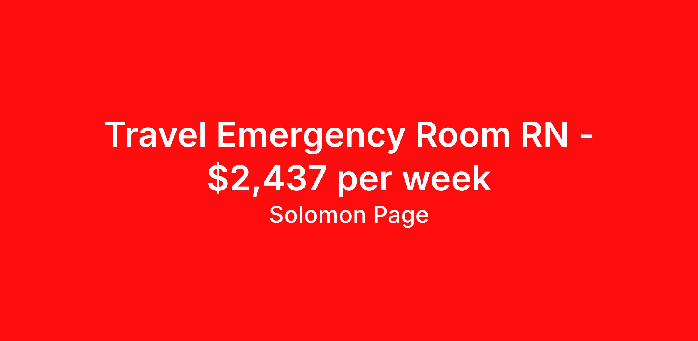 Solomon Page is seeking a travel nurse RN ED - Emergency Department for a travel nursing job in Boston, Massachusetts. Job Description & Requirements Specialty: ED - Emergency Department Discipline: RN Start Date: 04/12/2026 Duration: 13 weeks 36 hours per week Shift: 12 hours, rotating Employment Type: Travel Our client is looking to add a Registered Nurse to their team. Job Details: Location: Boston, Massachusetts Duration: 13 Weeks Start Date: 04/12/2026 Shift: 3x12 Rotating Qualifications: Current Massachusetts license Excellent interpersonal skills including patience, empathy, and compassion Effective communication skills, including active listening, writing, speaking and reading comprehension Fast and adaptive problem-solving abilities Ability to stand for long periods of time If you meet the required qualifications and are interested in this role, please apply today. Why Work with Us The success of Solomon Page is defined by our people. Offering a comprehensive benefits package, travel nurses have immediate access to medical coverage and ReviveHealth virtual care. Additionally, you are offered access to dental and vision coverage, commuter benefits, a 401(k) plan, flexible spending, referral bonuses, ongoing training, and more. As an ESOP company, Solomon Page offers an employee stock ownership plan to all consultants. As a member of our traveler community, you will join a nurturing culture that fosters your career goals. Solomon Page can connect you with your next opportunity – whether it is in your hometown, or you are looking to travel to a new destination. About Solomon Page Healthcare & Medical Staffing Accredited by the Joint Commission with the Gold Seal of Approval, Solomon Page prides ourselves in developing long-term relationships with healthcare providers based on trust and respect. Our experienced Healthcare and Medical Staffing experts are committed to providing safe and quality patient care through our wide network of travel nurses, locum tenens, and allied resources. For more information and additional healthcare opportunities, visit: solomonpage.com and connect with Solomon Page on Instagram, Facebook, Twitter, LinkedIn, and TikTok. 426196 Solomon Page Job ID 426196. Pay package is based on 12 hour shifts and 36 hours per week (subject to confirmation) with tax-free stipend amount to be determined. Posted job title: rn - emergency medicine | boston, massachusetts About Solomon Page Founded in 1990, Solomon Page has grown to be a leader in the staffing industry. As a member of our healthcare provider community, you will join a nurturing culture that fosters your career goals. We have the network and resources to connect you with your next opportunity – whether it is in your hometown, or you are looking to travel to a new destination. Accredited by the Joint Commission with the Gold Seal of Approval, Solomon Page prides itself in developing long-term relationships with healthcare providers based on trust and respect. Headquartered in New York with offices throughout the United States our experienced healthcare and medical staffing experts are committed to providing safe and quality patient care through our wide network of travel nurses, locum tenens, and allied resources. For more information and additional healthcare opportunities, visit: solomonpage.com /healthcare and connect with us on Facebook , Twitter , Instagram , Tik Tok , and LinkedIn. ReviveHealth Virtual Care: Available immediately. Receive free, 100% company paid, virtual care access. Upon commencement of your employment, Solomon Page offers automatic enrollment into ReviveHealth, which offers concierge, membership-based access to virtual primary care, urgent care, mental health therapy, a vision program, and prescription medications. Medical Coverage : Available immediately . Whether you are looking to enroll in single or family insurance, you have immediate access to quality coverage. Dental Coverage : Available the 1st of the month after your hire date . We offer dental insurance to you and your dependents. Vision Coverage : Available the 1st of the month after your hire date . We offer vision insurance to you and your dependents. Commuter Benefits: Available the 1st of the month after your hire date . Set aside pre-tax money to pay for public transportation. 401K Plan: Associates can enroll in the 401K plan after they have worked 1000 hours. ESOP Benefits: As an ESOP company, Solomon Page offers an employee stock ownership plan. Referral Bonus: A cash bonus is offered for referring a candidate to Solomon Page who gets placed. Training & Support: Training programs and ongoing career coaching and support is offered to consultants. Benefits Medical benefits Dental benefits Vision benefits 401k retirement plan Referral bonus