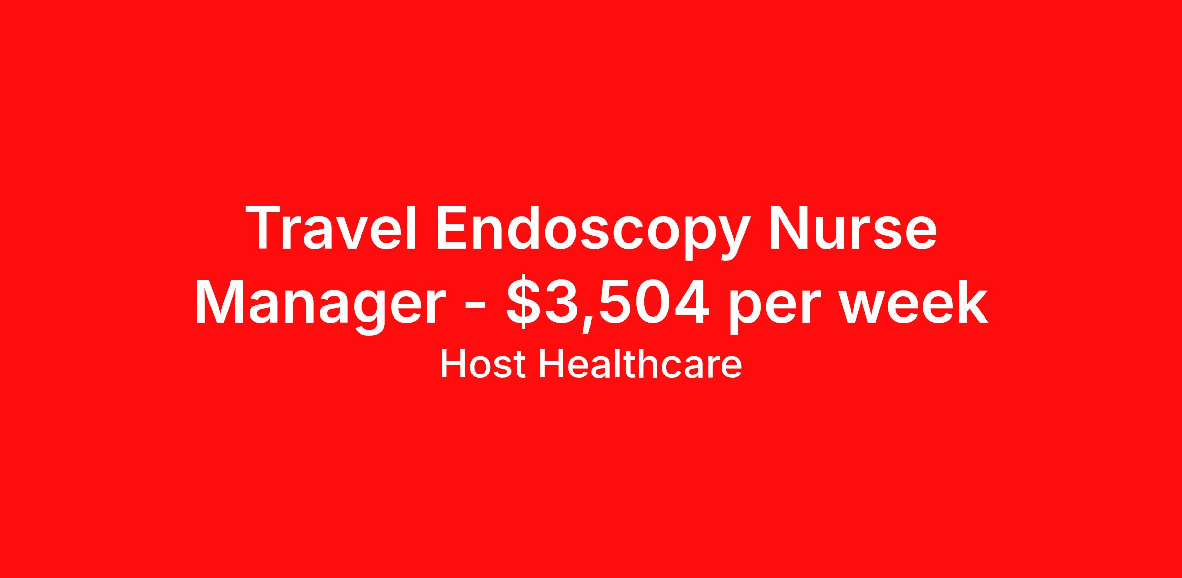 Host Healthcare is seeking a travel nurse RN Endoscopy for a travel nursing job in Concord, Massachusetts. Job Description & Requirements Specialty: Endoscopy Discipline: RN Start Date: 04/06/2026 Duration: 13 weeks 40 hours per week Shift: 8 hours, days Employment Type: Travel Host Healthcare Job ID a1fVX000002rdN3YAI. Pay package is based on 8 hour shifts and 40 hours per week (subject to confirmation) with tax-free stipend amount to be determined. Posted job title: Nurse Manager - Endoscopy About Host Healthcare At Host Healthcare, we provide a truly comfortable experience as you explore your travel nursing, therapy, or allied career. We make your travel healthcare journey easy by taking care of all the details, so you don’t have to. We are on a mission to help others live better and we do this by helping the healers of the world be as comfortable as possible. With access to tens of thousands of travel nursing, therapy, and allied jobs in all 50 states, our responsive and friendly recruiters find your dream position based on what’s important to you. During your assignment, get access to premium benefits, including Day 1 medical that continues up to 30 days between assignments, 401K matching, travel reimbursements, dedicated housing support, and more. We also offer 24/7 support from our team and access to our on-staff clinicians so you can feel comfortable and confident throughout your entire assignment. Travel comfortably with Host Healthcare. Benefits Referral bonus School loan reimbursement Vision benefits Wellness and fitness programs Company provided housing options License and certification reimbursement Life insurance Medical benefits Mileage reimbursement Pet insurance Discount program Employee assistance programs Guaranteed Hours Health savings account Holiday Pay 401k retirement plan Continuing Education Dental benefits