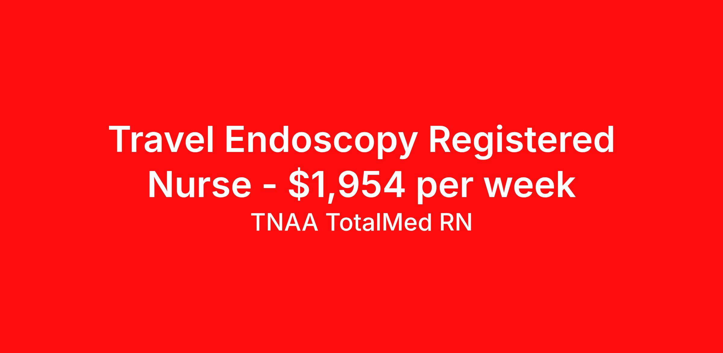 TNAA TotalMed RN is seeking a travel nurse RN Endoscopy for a travel nursing job in Washington, District of Columbia. Job Description & Requirements Specialty: Endoscopy Discipline: RN Start Date: 04/27/2026 Duration: 13 weeks 40 hours per week Shift: 10 hours, days Employment Type: Travel We're looking for Endoscopy RNs for an immediate travel nurse opening in Washington, DC. The right RN should have 1-2 years recent acute care experience. Read below for more requirements. As an Endoscopy RN, you will provide nursing care in an Endo environment, supporting the physicians and medical team in providing top-level care before, during and after the patients' procedures. Travel Nurses should have expertise in Endoscopy with an understanding in physiology, pathophysiology, endoscopy procedures, and pharmacodynamics of conscious sedation anesthesia and analgesia. As an Endo Travel Nurse, you should be prepared to perform the following tasks: Ensure a high standard of nursing care to patients attending the Endoscopy Unit, working within company policies and procedures. Provide technical assistance during diagnostic and therapeutic Endoscopic procedures, ensuring safe working practice. Participate in the care and maintenance of endoscopes and other specialized equipment, ensuring an agreed standard of decontamination at all times including accurate records of traceability of all endoscopes and associated equipment. Maintain a safe and clean environment within the clinical area in accordance with established standards and regulations. Endo Travel Nurses should be able to stand and walk for long periods of time, as well as bend, lean and stoop without difficulty. RNs should be able to easily lift 20 pounds. Moving or lifting of patients may require lifting of up to 50 pounds at times. Endo RNs may face hazards from exposure to chemicals and infectious diseases. Requirements*: ACLS, BLS, 2 Years * Additional certifications may be required before beginning an assignment. TotalMed Travel Job ID 1395464. Pay package is based on 10 hour shifts and 40 hours per week (subject to confirmation) with tax-free stipend amount to be determined. Posted job title: Endoscopy - Endo RN - Travel Nurse About TNAA TotalMed RN TotalMed is a Top Ten, travel nursing and healthcare staffing agency with the mission of igniting purpose in healthcare. The organization staffs nurses, therapists, pharmacists, and other clinicians of all specialties in all 50 states. They offer local and travel jobs and match caregivers with the right organization to assist both facilities and patients. As an organization, they focus on putting highly-skilled staff into facilities to ensure adequate staffing for a better patient experience. TotalMed specializes in recruiting and placing healthcare professionals in travel, PRN, and permanent positions across the country in Nursing and Allied Health. Throughout 2020, the organization filled roles at even the most short-staffed facilities during the most challenging time in healthcare. By matching the right travel healthcare professional with the right organization, TotalMed continues to offer a lifeline to facilities and their patients. Benefits Weekly pay Guaranteed Hours Continuing Education 401k retirement plan Sick pay Wellness and fitness programs Referral bonus Employee assistance programs Medical benefits Dental benefits Vision benefits Benefits start day 1