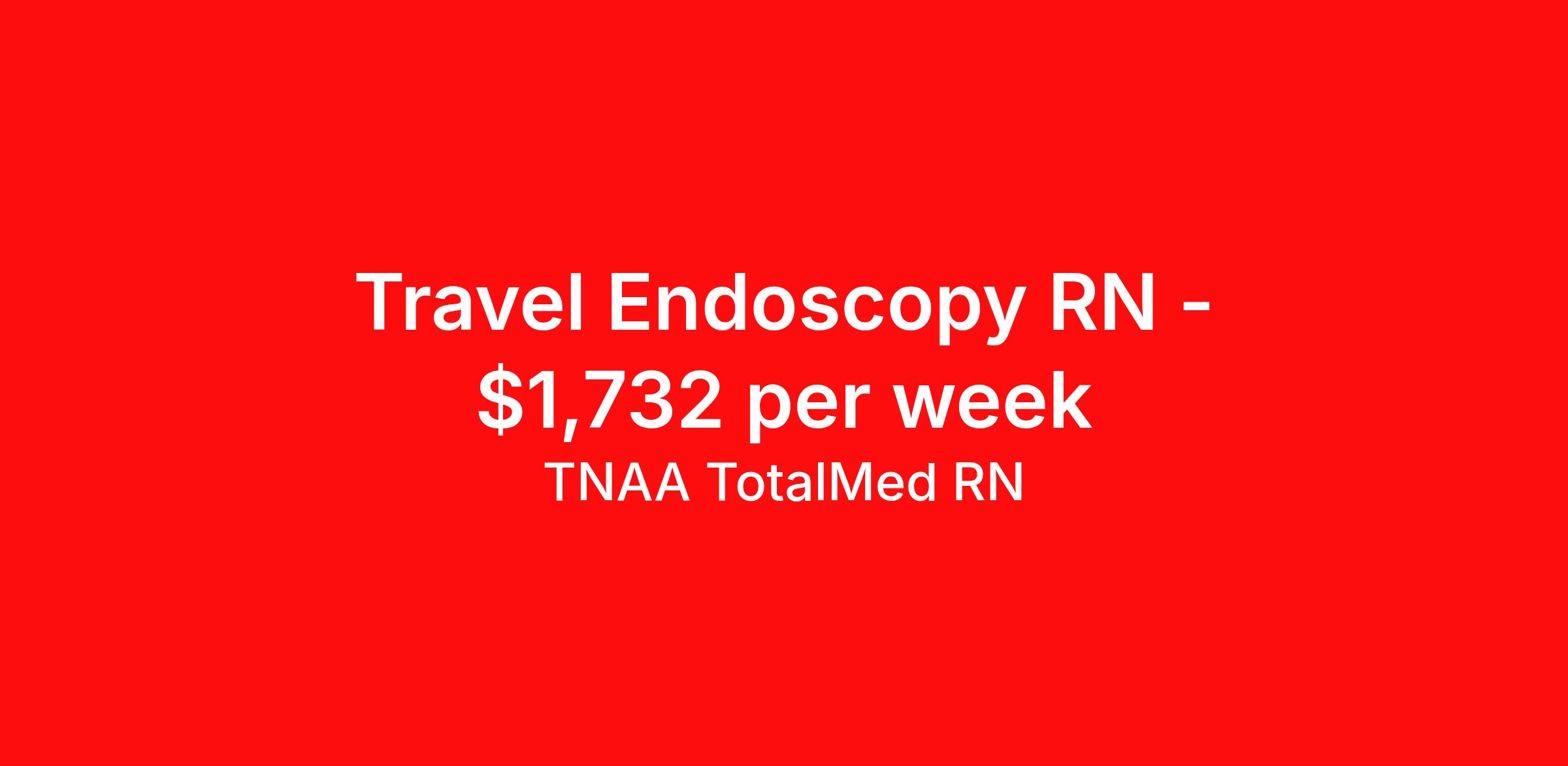 TNAA TotalMed RN is seeking a travel nurse RN Endoscopy for a travel nursing job in Nashville, Tennessee. Job Description & Requirements Specialty: Endoscopy Discipline: RN Duration: 13 weeks 40 hours per week Shift: 8 hours, days Employment Type: Travel We're looking for Endoscopy RNs for an immediate travel nurse opening in Nashville, TN. The right RN should have 1-2 years recent acute care experience. Read below for more requirements. As an Endoscopy RN, you will provide nursing care in an Endo environment, supporting the physicians and medical team in providing top-level care before, during and after the patients' procedures. Travel Nurses should have expertise in Endoscopy with an understanding in physiology, pathophysiology, endoscopy procedures, and pharmacodynamics of conscious sedation anesthesia and analgesia. As an Endo Travel Nurse, you should be prepared to perform the following tasks: Ensure a high standard of nursing care to patients attending the Endoscopy Unit, working within company policies and procedures. Provide technical assistance during diagnostic and therapeutic Endoscopic procedures, ensuring safe working practice. Participate in the care and maintenance of endoscopes and other specialized equipment, ensuring an agreed standard of decontamination at all times including accurate records of traceability of all endoscopes and associated equipment. Maintain a safe and clean environment within the clinical area in accordance with established standards and regulations. Endo Travel Nurses should be able to stand and walk for long periods of time, as well as bend, lean and stoop without difficulty. RNs should be able to easily lift 20 pounds. Moving or lifting of patients may require lifting of up to 50 pounds at times. Endo RNs may face hazards from exposure to chemicals and infectious diseases. Requirements*: BLS, 2 Years * Additional certifications may be required before beginning an assignment. TotalMed Travel Job ID 1378956. Pay package is based on 8 hour shifts and 40 hours per week (subject to confirmation) with tax-free stipend amount to be determined. Posted job title: Endoscopy - Endo RN - Travel Nurse About TNAA TotalMed RN TotalMed is a Top Ten, travel nursing and healthcare staffing agency with the mission of igniting purpose in healthcare. The organization staffs nurses, therapists, pharmacists, and other clinicians of all specialties in all 50 states. They offer local and travel jobs and match caregivers with the right organization to assist both facilities and patients. As an organization, they focus on putting highly-skilled staff into facilities to ensure adequate staffing for a better patient experience. TotalMed specializes in recruiting and placing healthcare professionals in travel, PRN, and permanent positions across the country in Nursing and Allied Health. Throughout 2020, the organization filled roles at even the most short-staffed facilities during the most challenging time in healthcare. By matching the right travel healthcare professional with the right organization, TotalMed continues to offer a lifeline to facilities and their patients. Benefits Weekly pay Guaranteed Hours Continuing Education 401k retirement plan Sick pay Wellness and fitness programs Referral bonus Employee assistance programs Medical benefits Dental benefits Vision benefits Benefits start day 1