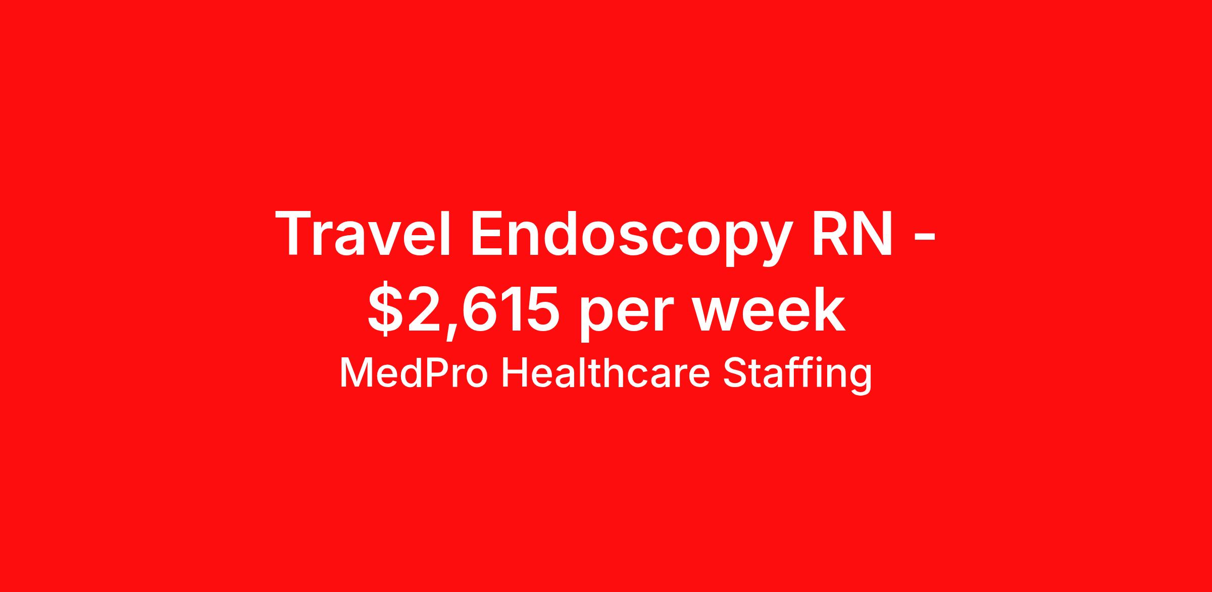 MedPro Healthcare Staffing is seeking a travel nurse RN Endoscopy for a travel nursing job in Salem, Massachusetts. Job Description & Requirements Specialty: Endoscopy Discipline: RN Start Date: 04/19/2026 Duration: 13 weeks 40 hours per week Shift: 8 hours, days Employment Type: Travel MedPro Healthcare Staffing , a Joint Commission-certified staffing agency, is seeking a quality Endoscopy Registered Nurse (RN) for a travel assignment with one of our top healthcare clients. Requirements Active RN License Degree from accredited nursing program BLS Certifications ACLS Certifications Eighteen months of recent experience in an Acute Care Endoscopy setting Benefits Weekly pay and direct deposit Full coverage of all credentialing fees Private housing or housing allowance Group Health insurance for you and your family Company-paid life and disability insurance Travel reimbursement 401(k) matching Unlimited Referral Bonuses up to $1,000 Duties Responsibilities Endoscopy Nurses (RN) are registered nurses with expertise in Endoscopy with an understanding in physiology, pathophysiology, endoscopy procedures and pharmacodynamics of conscious sedation anesthesia and analgesia. Performs assessment/data collection in an ongoing and systematic manner, focusing on physiologic, psychobiologic and cognitive needs of the patient/family. Utilizes assessment data in formulating nursing diagnoses. Provides technical assistance during diagnostic and therapeutic Endoscopic procedures, ensuring safe working practice. Maintains personal contact with patients and relatives, being sensitive to their needs for courtesy, dignity and privacy and ensuring a friendly environment at all times. Stores, checks and administers medication in accordance with established standards and guidelines. Maintains timely and accurate nursing records and ensuring that confidentiality is respected. Works with minimal supervision during endoscopic procedures, admission and recovery of patients and other related procedures About Agency MedPro Healthcare Staffing is a Joint Commission certified provider of contract staffing services. Since 1983, we have placed nursing and allied travelers in top healthcare facilities nationwide. Join us today for your very own MedPro Experience®. If qualified and interested, please call for immediate consideration. MedPro Staffing is an Equal Opportunity Employer. All applicants will be considered for employment without attention to race, color, religion, national origin, age, sex, disability, marital status or veteran status. Key Words: Registered Nurse, RN, Endoscopy, Gastroenterology, Travel Nurse, Contract Nurse, Agency Nurse, Agency RN, RN-Endo, RN-GI, RN-Endoscopy, RN-Gastroenterology, Travel RN, Contract, Nursing, Travel Nursing *Weekly payment estimates are intended for informational purposes only and include a gross estimate of hourly wages and reimbursements for meal, incidental, and housing expenses. Your recruiter will confirm your eligibility and provide additional details. MedPro Job ID a0Fcx00000Gx64zEAB. Pay package is based on 8 hour shifts and 40 hours per week (subject to confirmation) with tax-free stipend amount to be determined. Posted job title: Endoscopy Registered Nurse Nursing: Endoscopy. About MedPro Healthcare Staffing At MedPro Healthcare Staffing , we believe no one cares more for caregivers than we do. Our mission is simple: you focus on your patients, and we’ll take care of the rest. As a Joint Commission-certified leader in temporary and contract healthcare staffing since 1983, MedPro has proudly connected nursing and allied travelers with top healthcare facilities across the nation. With thousands of job opportunities available nationwide, we make it easy to find assignments that align with your goals and lifestyle. Our on-staff clinical support team—alongside a compassionate group of experienced recruiters—provides hands-on guidance every step of the way. From Day 1 medical benefits and a 401(k) plan to personalized career support, we’re committed to ensuring every professional we serve feels valued, cared for, and empowered to succeed. Guided by a CEO who is a Registered Nurse, MedPro is built on a foundation of clinical insight and genuine compassion for the caregiving community. Through The MedPro Experience® , we deliver travel assignments that are rewarding, memorable, and designed to help you DREAM big, EXPLORE often, and ACHIEVE greatness. Benefits Day 1 medical, dental, and vision benefits for you and your family Weekly pay and direct deposit Unlimited Referral Bonuses starting at $500 On Staff Clinical Support Team Access to nationwide travel assignments MPX Mobile app -24/7 real-time access to jobs, credentials, assignment details, and more Full coverage of all credentialing fees Private housing or housing allowance Tax Free Per Diems, Housing Stipends and Travel Reimbursements Company-paid life and disability insurance Travel reimbursement 401(k) matching Benefits Weekly pay Referral bonus Employee assistance programs