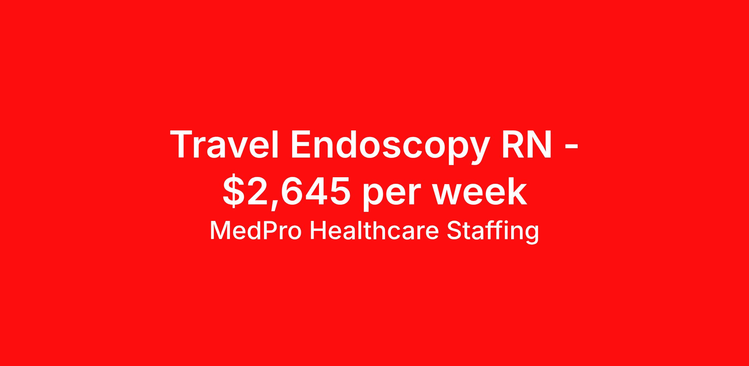 MedPro Healthcare Staffing is seeking a travel nurse RN Endoscopy for a travel nursing job in Salem, Massachusetts. Job Description & Requirements Specialty: Endoscopy Discipline: RN Start Date: 04/19/2026 Duration: 13 weeks 40 hours per week Shift: 8 hours, days Employment Type: Travel MedPro Healthcare Staffing , a Joint Commission-certified staffing agency, is seeking a quality Endoscopy Registered Nurse (RN) for a travel assignment with one of our top healthcare clients. Requirements Active RN License Degree from accredited nursing program BLS Certifications ACLS Certifications Eighteen months of recent experience in an Acute Care Endoscopy setting Benefits Weekly pay and direct deposit Full coverage of all credentialing fees Private housing or housing allowance Group Health insurance for you and your family Company-paid life and disability insurance Travel reimbursement 401(k) matching Unlimited Referral Bonuses up to $1,000 Duties Responsibilities Endoscopy Nurses (RN) are registered nurses with expertise in Endoscopy with an understanding in physiology, pathophysiology, endoscopy procedures and pharmacodynamics of conscious sedation anesthesia and analgesia. Performs assessment/data collection in an ongoing and systematic manner, focusing on physiologic, psychobiologic and cognitive needs of the patient/family. Utilizes assessment data in formulating nursing diagnoses. Provides technical assistance during diagnostic and therapeutic Endoscopic procedures, ensuring safe working practice. Maintains personal contact with patients and relatives, being sensitive to their needs for courtesy, dignity and privacy and ensuring a friendly environment at all times. Stores, checks and administers medication in accordance with established standards and guidelines. Maintains timely and accurate nursing records and ensuring that confidentiality is respected. Works with minimal supervision during endoscopic procedures, admission and recovery of patients and other related procedures About Agency MedPro Healthcare Staffing is a Joint Commission certified provider of contract staffing services. Since 1983, we have placed nursing and allied travelers in top healthcare facilities nationwide. Join us today for your very own MedPro Experience®. If qualified and interested, please call for immediate consideration. MedPro Staffing is an Equal Opportunity Employer. All applicants will be considered for employment without attention to race, color, religion, national origin, age, sex, disability, marital status or veteran status. Key Words: Registered Nurse, RN, Endoscopy, Gastroenterology, Travel Nurse, Contract Nurse, Agency Nurse, Agency RN, RN-Endo, RN-GI, RN-Endoscopy, RN-Gastroenterology, Travel RN, Contract, Nursing, Travel Nursing *Weekly payment estimates are intended for informational purposes only and include a gross estimate of hourly wages and reimbursements for meal, incidental, and housing expenses. Your recruiter will confirm your eligibility and provide additional details. MedPro Job ID a0Fcx00000Gx63NEAR. Pay package is based on 8 hour shifts and 40 hours per week (subject to confirmation) with tax-free stipend amount to be determined. Posted job title: Endoscopy Registered Nurse Nursing: Endoscopy. About MedPro Healthcare Staffing At MedPro Healthcare Staffing , we believe no one cares more for caregivers than we do. Our mission is simple: you focus on your patients, and we’ll take care of the rest. As a Joint Commission-certified leader in temporary and contract healthcare staffing since 1983, MedPro has proudly connected nursing and allied travelers with top healthcare facilities across the nation. With thousands of job opportunities available nationwide, we make it easy to find assignments that align with your goals and lifestyle. Our on-staff clinical support team—alongside a compassionate group of experienced recruiters—provides hands-on guidance every step of the way. From Day 1 medical benefits and a 401(k) plan to personalized career support, we’re committed to ensuring every professional we serve feels valued, cared for, and empowered to succeed. Guided by a CEO who is a Registered Nurse, MedPro is built on a foundation of clinical insight and genuine compassion for the caregiving community. Through The MedPro Experience® , we deliver travel assignments that are rewarding, memorable, and designed to help you DREAM big, EXPLORE often, and ACHIEVE greatness. Benefits Day 1 medical, dental, and vision benefits for you and your family Weekly pay and direct deposit Unlimited Referral Bonuses starting at $500 On Staff Clinical Support Team Access to nationwide travel assignments MPX Mobile app -24/7 real-time access to jobs, credentials, assignment details, and more Full coverage of all credentialing fees Private housing or housing allowance Tax Free Per Diems, Housing Stipends and Travel Reimbursements Company-paid life and disability insurance Travel reimbursement 401(k) matching Benefits Weekly pay Referral bonus Employee assistance programs