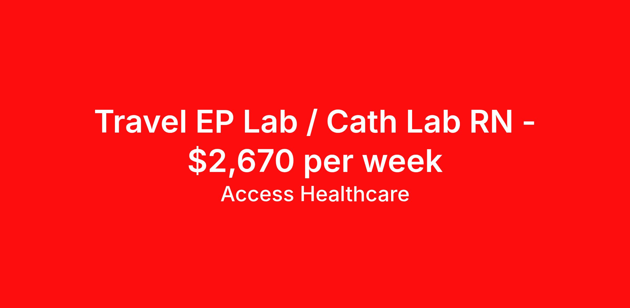 Access Healthcare is seeking a travel nurse RN Cardiac Cath Lab for a travel nursing job in Brooklyn, New York. Job Description & Requirements Specialty: Cardiac Cath Lab Discipline: RN Start Date: 04/06/2026 Duration: 8 weeks 36 hours per week Shift: 12 hours, days Employment Type: Travel Access Healthcare Job ID 76406188. Pay package is based on 12 hour shifts and 36 hours per week (subject to confirmation) with tax-free stipend amount to be determined. About Access Healthcare Access Healthcare aims to provide superior service to our nursing family by providing around the clock support, competitive pay packages and an unmatched benefits package! Unlike other agencies, we offer a true family feel and work with you to find the placement that is right for you. We offer one of the top leading pay packages in the industry and we are ready to get you the money you deserve! Access Healthcare was founded by two travel nurses, Danielle and Diego, who had a dream and a shared vision of creating an agency which all nurses would want to work with. Our passion has led us to where we are today as one of the top 10 agencies in our home state of New Jersey, with access to contracts in all 50 states! We encourage you to join our team and we cannot wait to get to know you!