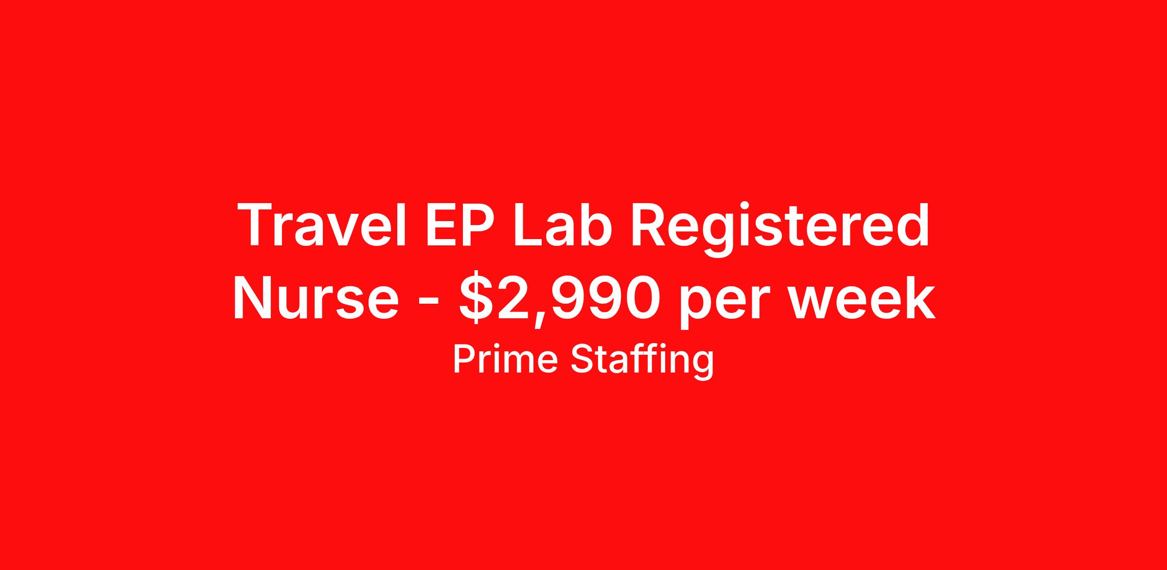 Prime Staffing is seeking a travel nurse RN Electrophysiology Lab for a travel nursing job in Paramus, New Jersey. Job Description & Requirements Specialty: Electrophysiology Lab Discipline: RN Start Date: 04/20/2026 Duration: 13 weeks 40 hours per week Shift: 8 hours Employment Type: Travel About the Position Specialty: Registered Nurse – Electrophysiology (EP Lab) Experience: Minimum 2 years of recent EP lab or cardiac cath lab experience required License: Active State or Compact RN License Certifications: BLS and ACLS required – include expiration dates Must-Have: All time-off requests must be submitted with the initial application Description: Seeking an experienced EP Lab RN to assist in electrophysiology procedures, including pacemaker and ICD insertions, ablations, and tilt table testing. Responsibilities include monitoring patients, administering medications, circulating during procedures, and assisting with conscious sedation. This role includes 10–12-hour shifts , with on-call, weekend, and holiday rotations as needed. Compliance may take 4–6 weeks . A voice and nurse manager interview are required. Shift make-ups may be necessary per departmental needs. Requirements Required for Onboarding: Active RN License BLS ACLS Prime Staffing Job ID 36196369. Pay package is based on 8 hour shifts and 40.0 hours per week (subject to confirmation) with tax-free stipend amount to be determined. Posted job title: RN:Electrophysiology,08:00:00-16:00:00 About Prime Staffing At Prime Staffing, we understand the importance of finding the perfect fit for both our clients and candidates. Prime Staffing utilizes a unique matchmaking approach, providing the most qualified contingent staffing to our clients, and the most competitive contracts to our workforce. Our experienced team takes the time to get to know both our clients and candidates, their needs, and preferences, to ensure that each placement is a success. We offer a wide range of staffing services including temporary, temp-to-perm, and direct hire placements. Our extensive network of qualified candidates includes nurses, allied healthcare professionals, corporate support professionals and executives.