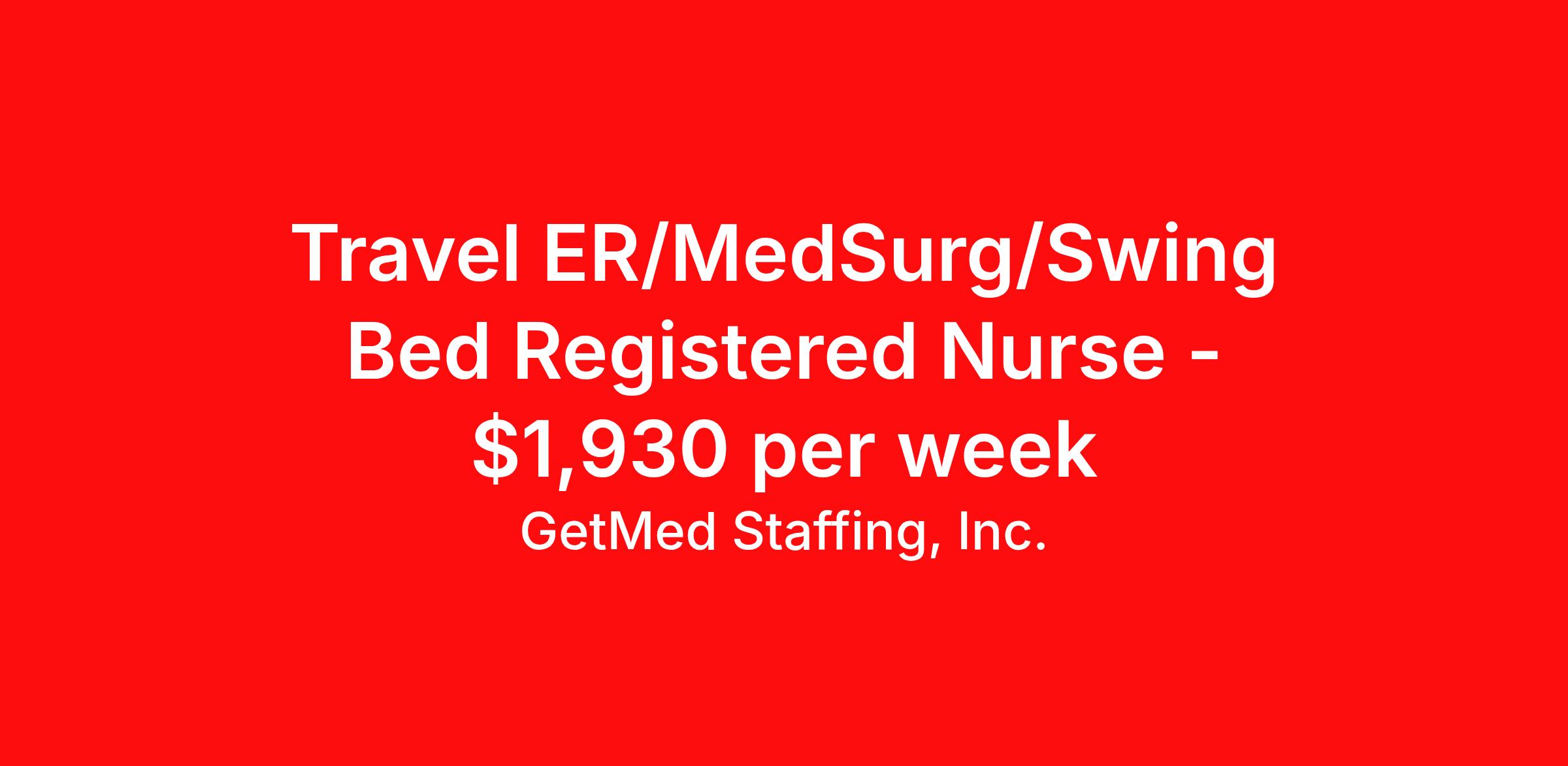 GetMed Staffing, Inc. is seeking a travel nurse RN Med Surg for a travel nursing job in Turtle Lake, North Dakota. Job Description & Requirements Specialty: Med Surg Discipline: RN Start Date: 03/30/2026 Duration: 13 weeks 36 hours per week Shift: 12 hours, nights Employment Type: Travel GetMed Staffing is searching for a strong Critical Access RN to assist our traveler-friendly client. A minimum of 1-2 years of experience is required. Traveling with GetMed Staffing offers the unique opportunity to gain diverse experiences, both personally and professionally. Gain experience that matters. GetMed Staffing, Inc. Job ID 35947974. Pay package is based on 12 hour shifts and 36.0 hours per week (subject to confirmation) with tax-free stipend amount to be determined. Posted job title: RN:Critical Access RN,19:00:00-07:00:00 About GetMed Staffing, Inc. We are a diversity owned company, specializing in healthcare recruiting services. We truly understand how important a healthcare travelers' relationship is with their recruiter, as well as our relationship is with our healthcare facilities. We recognize that the needs of our healthcare travelers can vary, and therefore we provide the personalized touch necessary to ensure a successful travel assignment each and every time. Our healthcare facilities and clients benefit from us putting our healthcare travelers first. GetMed Staffing is excited to be a leader within the industry by focusing on providing healthcare travelers with more choices and possibilities as they plan for their next healthcare travel assignment. Benefits Life insurance Medical benefits Dental benefits Vision benefits 401k retirement plan