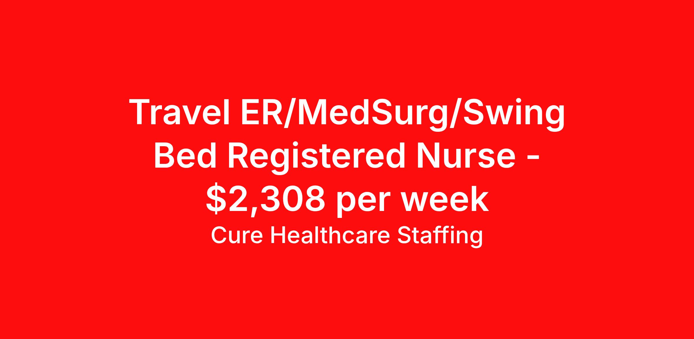 Cure Healthcare Staffing is seeking a travel nurse RN ED - Emergency Department Med Surg for a travel nursing job in Turtle Lake, North Dakota. Job Description & Requirements Specialty: ED - Emergency Department Discipline: RN Start Date: 03/30/2026 Duration: 13 weeks 36 hours per week Shift: 12 hours, nights Employment Type: Travel Cure Healthcare is seeking a RN - ER ED for positions in Turtle Lake, North Dakota. Current North Dakota license and AHA BLS and ACLS required and additional certifications related to this specialty. To qualify for this travel assignment, the candidate's primary residence must be located at least 50 miles from the facility address. This shift is 3x12 Nights. Required: 2 years of recent experience in ER ED. Please inquire for specific job details and confirm shift required by facility. Cure Healthcare Staffing Job ID 35966384. Pay package is based on 12 hour shifts and 36.0 hours per week (subject to confirmation) with tax-free stipend amount to be determined. Posted job title: RN:ER ED,18:00:00-06:00:00 About Cure Healthcare Staffing Phone Number: Main: 512-572-6388 Website: https://curehealthcarestaffing.com/ With 20 years of healthcare staffing experience, Cure is helping nurses and allied health professionals rediscover their love of patient care while providing healthcare facilities with the flexible staffing solutions they need. We talk to nurses and techs every day who feel overwhelmed. By empowering them with flexibility and ownership of their career, we can keep more qualified healthcare professionals in direct patient care. Patient care should always come first. That’s why we went through the process to become accredited by the Joint Commission. We only accept staff that meet the Joint Commission quality criteria so we can ensure that short-term staff assignments contribute to quality care rather than detract from it.