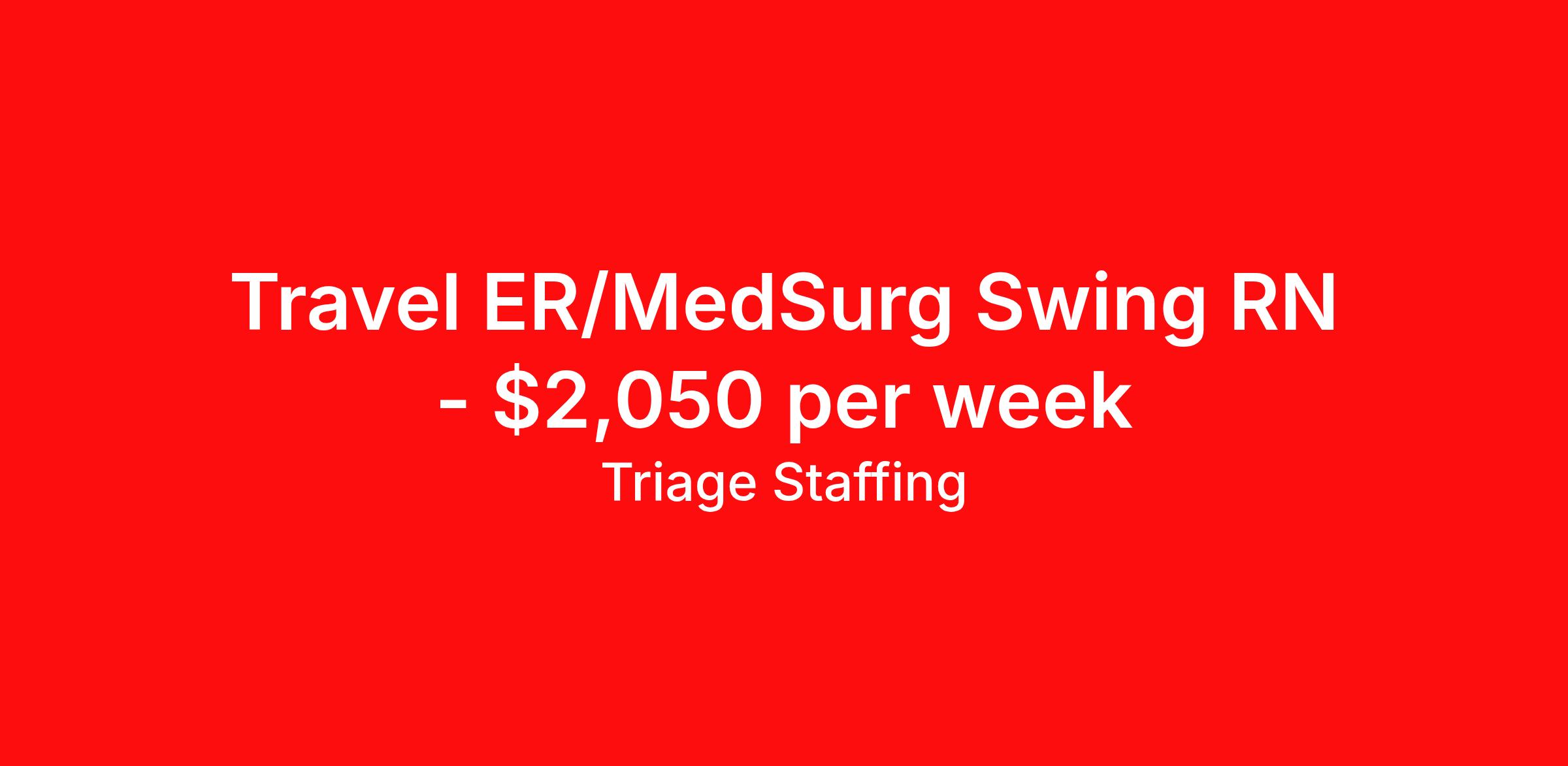 Triage Staffing is seeking a travel nurse RN ED - Emergency Department Med Surg for a travel nursing job in Breckenridge, Minnesota. Job Description & Requirements Specialty: ED - Emergency Department Discipline: RN Start Date: 04/06/2026 Duration: 13 weeks 36 hours per week Shift: 12 hours, flexible Employment Type: Travel Travel Nursing: Emergency Department Breckenridge, MN Location: Breckenridge, MN Start Date: 4/6/2026 Shift Details: 12H Variable 36 hours per week Length: 13 WEEKS Apply for specific facility details.ER RN Triage Staffing Job ID XNHRHPDY. Posted job title: Nursing: Emergency Department About Triage Staffing At Triage, we prefer to be real . Real about expectations—both ours and yours. Real about how a decision you make today could affect your tomorrows. Real about how compensation actually works. Real about how great—or grating—your next supervisor may be. Being real allows everyone at Triage to be ready . Ready to serve you with real honesty. So if that gig near the ocean is really no day at the beach, or that third shift comes with a second-class rate, we tell you. So you can be ready, too. We staff all five major divisions of acute care—nursing, lab, radiology, cardiopulmonary and rehab therapy, offering: - Competitive, custom pay packages - One point of contact for both travelers and facilities (per division) - A reliable recruiter who's got your back throughout your entire assignment - In-house compliance and accounting specialists - A clinical liaison team available 24/7 to offer medical and professional support and career development - A mentoring program that is run and managed by actual clinicians—yeah, you read that right - And more (because of course there’s more) Are we the biggest? No. Are we the best? That’s rather subjective, but we’re trying to be. Will we work like hell to get you as close to your idea of heaven as possible? Yes. Yes, we will. Benefits: Day One comprehensive, nationwide insurance plans for health, vision and dental and life—including a HSA option Day One 401(k) program with employer-matching contributions once eligible Facility cancelling protection—your time is money on and off-the-clock Guaranteed hours Weekly paychecks via direct deposit Earned vacation bonuses for time worked Paid holidays Employee assistance program (EAP)—your mental health is important, too Continuing education, certification and licensing reimbursement Workers comp—because accidents happen Top-rated professional liability insurance Company provided housing options Referral bonus—$750 in your pocket after they’ve completed a 13-week assignment