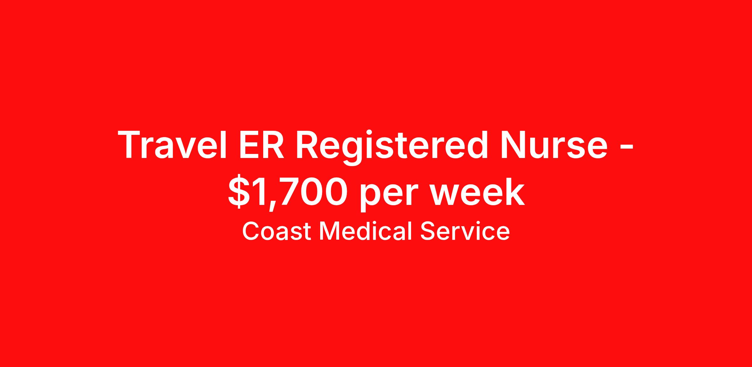 Coast Medical Service is seeking a travel nurse RN ED - Emergency Department for a travel nursing job in Cleveland, Ohio. Job Description & Requirements Specialty: ED - Emergency Department Discipline: RN Start Date: 04/17/2026 Duration: 13 weeks 36 hours per week Shift: 12 hours, nights Employment Type: Travel Coast Medical Service is a nationwide travel nursing & allied healthcare staffing agency dedicated to providing an elite traveler experience for the experienced or first-time traveler. Coast is featured on Blue Pipes' 2023 Best Travel Agencies and named a 2022 Top Rated Healthcare Staffing Firm & 2023 First Half Top Rated Healthcare Staffing Firm by Great Recruiters. Please note that pay rate may differ for locally based candidates. Please apply here or contact a recruiter directly to learn more about this position & the facility, and/or explore others that may be of interest to you. We look forward to speaking with you! Coast Medical Services Job ID 36138456. Pay package is based on 12 hour shifts and 36.0 hours per week (subject to confirmation) with tax-free stipend amount to be determined. Posted job title: RN:Urgent Care,19:00:00-07:30:00