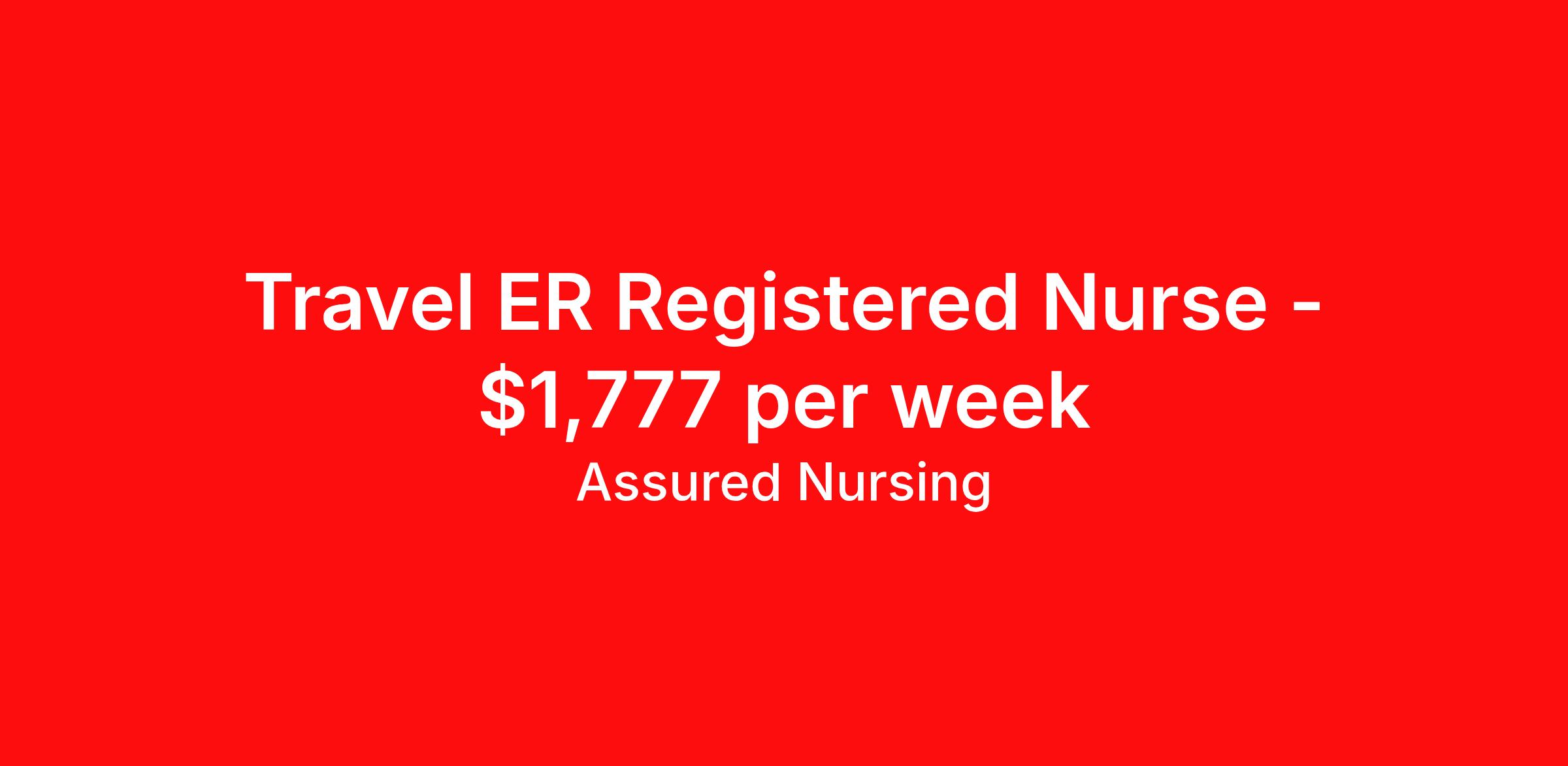 Assured Nursing is seeking a travel nurse RN ED - Emergency Department for a travel nursing job in Richardson, Texas. Job Description & Requirements Specialty: ED - Emergency Department Discipline: RN Start Date: 04/20/2026 Duration: 13 weeks 36 hours per week Shift: 12 hours, nights Employment Type: Travel Assured Nursing is currently seeking a RN for a contract position in Richardson Texas . This is a 7p-7:30a, 19:00:00-07:30:00, 12.00-3 position in the . The ideal candidate will possess a current state license as a RN and have at least 2 years of recent experience as a ER RN . Assured Nursing Job ID 36204769. Pay package is based on 12 hour shifts and 36.0 hours per week (subject to confirmation) with tax-free stipend amount to be determined. Posted job title: RN:ER,19:00:00-07:30:00 Benefits Weekly pay Holiday Pay 401k retirement plan Referral bonus Medical benefits Dental benefits Vision benefits