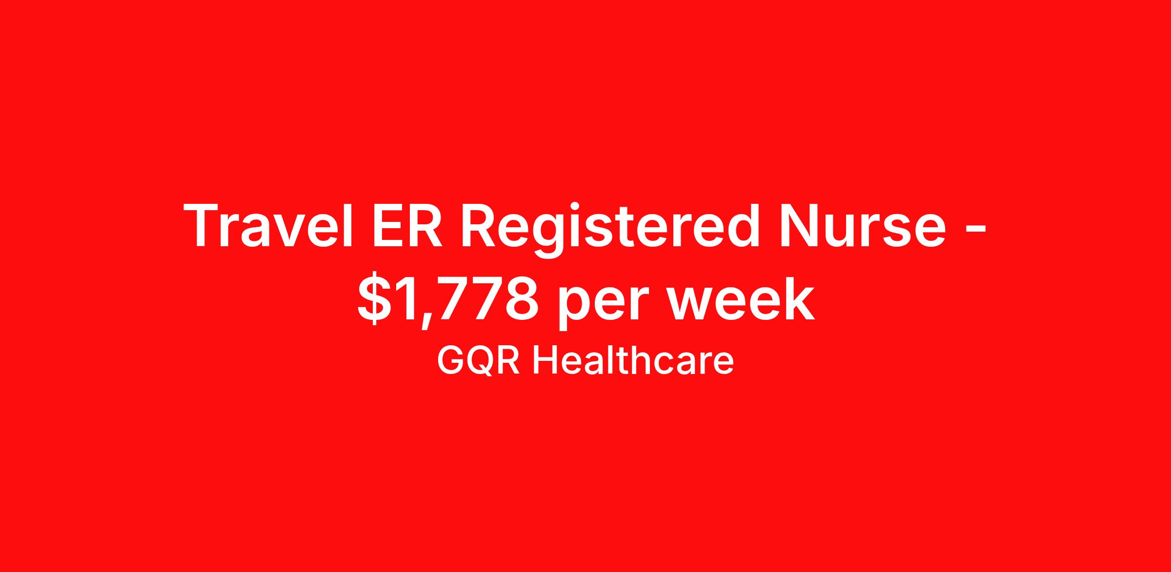 GQR Healthcare is seeking a travel nurse RN ED - Emergency Department for a travel nursing job in Midland, Texas. Job Description & Requirements Specialty: ED - Emergency Department Discipline: RN Start Date: 04/13/2026 Duration: 12 weeks 36 hours per week Shift: 12 hours, nights Employment Type: Travel Contract - W2 Emergency Room (ER) Registered Nurse (RN) Job Location: Midland, Texas Start Date: April 13, 2026 Profession: Registered Nurse (RN) Facility: Short Term Acute Care Estimated Pay: $1777.91 - $1872.91 Duration:12 weeks Specialty:Emergency Room (ER) Shift: Night Shift Details: null Night Job Type: Travel *Estimated weekly pay includes projected hourly wages and weekly meal and lodging per diems for eligible clinicians based on nationally published GSA rates. Actual weekly pay and per diems may differ from the amount shown and are subject to change during an assignment. Benefits: Day 1 Insurance Cigna medical, MetLife dental and vision insurance License reimbursement for new licenses needed for each assignment Discounts with hotels and rental cars A dedicated recruiter and support team that will help you every step of the way to sure you start on time and have an exceptional experience Referral bonus up to $700 About the Company: Finding the right role is about more than just matching skills to a job—it’s about aligning with your goals, values, and the way you want to work. As an award-winning talent partner, we support healthcare professionals through every step of that process, offering meaningful opportunities, clear guidance, and long-term partnership. From our first conversation to your first day on the job (and beyond!), we’re here to help you move forward with confidence. GQR Job ID 789384. Pay package is based on 12 hour shifts and 36 hours per week (subject to confirmation) with tax-free stipend amount to be determined. Posted job title: Registered Nurse (RN) About GQR Healthcare GQR’s Healthcare team specializes in connecting experts within the industry to highly skilled healthcare professionals across the US market. In the competitive healthcare market, we recognize that the industry’s common goals of improved quality of care and patient outcomes are wholly reliant upon the professionals directly supporting these initiatives. Leveraging our extensive candidate network, we deliver continuity of care for the communities our partners serve to ensure the patient experience is of the highest quality. Through deep market specialization and a unique approach to talent acquisition, GQR Healthcare provides an unparalleled and personalized experience across all medical specialties in nursing and within diverse healthcare platforms across the industry.