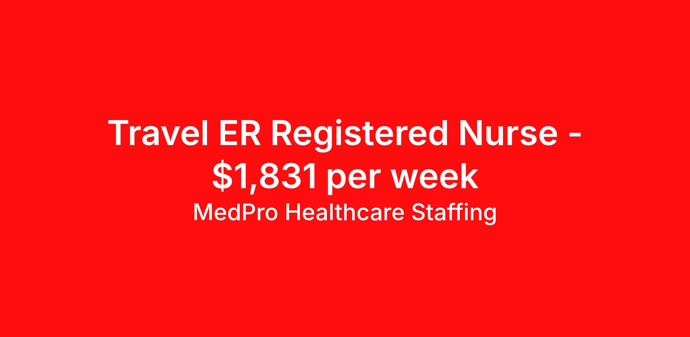 MedPro Healthcare Staffing is seeking a travel nurse RN ED - Emergency Department for a travel nursing job in Oklahoma City, Oklahoma. Job Description & Requirements Specialty: ED - Emergency Department Discipline: RN Start Date: 04/14/2026 Duration: 13 weeks 36 hours per week Shift: 12 hours, nights Employment Type: Travel MedPro Healthcare Staffing , a Joint Commission-certified staffing agency, is seeking a quality Registered Nurse - Emergency Room for a travel assignment with one of our top healthcare clients. Requirements Active RN License Degree from accredited nursing program BLS, ACLS, PALS & TNCC may be required in some positions Eighteen months of recent experience in an Acute Care Emergency Room setting Other requirements to be determined by our client facility Benefits Weekly pay and direct deposit Full coverage of all credentialing fees Private housing or housing allowance Group Health insurance for you and your family Company-paid life and disability insurance Travel reimbursement 401(k) matching Unlimited Referral Bonuses up to $1,000 Duties Responsibilities Emergency Room registered nurses (RN) provide care for patients from various types of illness or trauma requiring emergency attention and must be able to recognize and effectively treat life-threatening conditions Responsible for assessing, intervening and stabilizing a variety of trauma and illnesses with decisive action. Due to the range of medical conditions that may require urgent treatment and care, they must be knowledgeable about general as well as specific health issues. Properly understand triage in order to prioritize injuries based on medical need. Able to make quick and accurate assessments about incoming patients, including both physical and mental health conditions. About Agency MedPro Healthcare Staffing is a Joint Commission certified provider of contract staffing services. Since 1983, we have placed nursing and allied travelers in top healthcare facilities nationwide. Join us today for your very own MedPro Experience®. If qualified and interested, please call for immediate consideration. MedPro Staffing is an Equal Opportunity Employer. All applicants will be considered for employment without attention to race, color, religion, national origin, age, sex, disability, marital status or veteran status. Key Words: Emergency Room Nurse, RN-ER, Emergency Room, Critical Care, Emergency Department, ACLS, EKG, Travel Nurse, Contract Nurse, Agency Nurse, Travel Contract, ER-RN, RN-ED, Emergency Room Nursing, ED Nurse, ER positions, RN-ER positions, ER Contracts, Travel Nurse *Weekly payment estimates are intended for informational purposes only and include a gross estimate of hourly wages and reimbursements for meal, incidental, and housing expenses. Your recruiter will confirm your eligibility and provide additional details. MedPro Job ID a0Fcx00000H7J5lEAF. Pay package is based on 12 hour shifts and 36 hours per week (subject to confirmation) with tax-free stipend amount to be determined. Posted job title: Emergency Room Registered Nurse Nursing: Emergency Room. About MedPro Healthcare Staffing At MedPro Healthcare Staffing , we believe no one cares more for caregivers than we do. Our mission is simple: you focus on your patients, and we’ll take care of the rest. As a Joint Commission-certified leader in temporary and contract healthcare staffing since 1983, MedPro has proudly connected nursing and allied travelers with top healthcare facilities across the nation. With thousands of job opportunities available nationwide, we make it easy to find assignments that align with your goals and lifestyle. Our on-staff clinical support team—alongside a compassionate group of experienced recruiters—provides hands-on guidance every step of the way. From Day 1 medical benefits and a 401(k) plan to personalized career support, we’re committed to ensuring every professional we serve feels valued, cared for, and empowered to succeed. Guided by a CEO who is a Registered Nurse, MedPro is built on a foundation of clinical insight and genuine compassion for the caregiving community. Through The MedPro Experience® , we deliver travel assignments that are rewarding, memorable, and designed to help you DREAM big, EXPLORE often, and ACHIEVE greatness. Benefits Day 1 medical, dental, and vision benefits for you and your family Weekly pay and direct deposit Unlimited Referral Bonuses starting at $500 On Staff Clinical Support Team Access to nationwide travel assignments MPX Mobile app -24/7 real-time access to jobs, credentials, assignment details, and more Full coverage of all credentialing fees Private housing or housing allowance Tax Free Per Diems, Housing Stipends and Travel Reimbursements Company-paid life and disability insurance Travel reimbursement 401(k) matching Benefits Weekly pay Referral bonus Employee assistance programs
