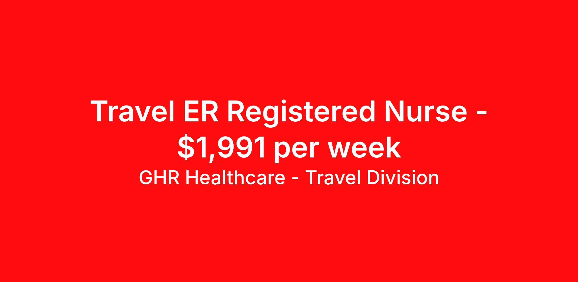 GHR Healthcare - Travel Division is seeking a travel nurse RN ED - Emergency Department for a travel nursing job in Lancaster, South Carolina. Job Description & Requirements Specialty: ED - Emergency Department Discipline: RN Start Date: 04/06/2026 Duration: 13 weeks 36 hours per week Shift: 12 hours Employment Type: Travel GHR Healthcare - Travel Division Job ID 76240630. Pay package is based on 12 hour shifts and 36 hours per week (subject to confirmation) with tax-free stipend amount to be determined. About GHR Healthcare - Travel Division For over 30 years, GHR Healthcare has been the bridge between healthcare professionals and the facilities that need them nationwide. We're committed to uncovering your ideal fit, supported by GHR's dedication to competitive compensation, transparent communication, and a devoted team that genuinely cares about your career journey. You can trust us to stand by your side as your advocate, confidante, and partner in advancing your career. At GHR, care and consideration are at the heart of everything we do. Visit ghrhealthcare.com to learn more.