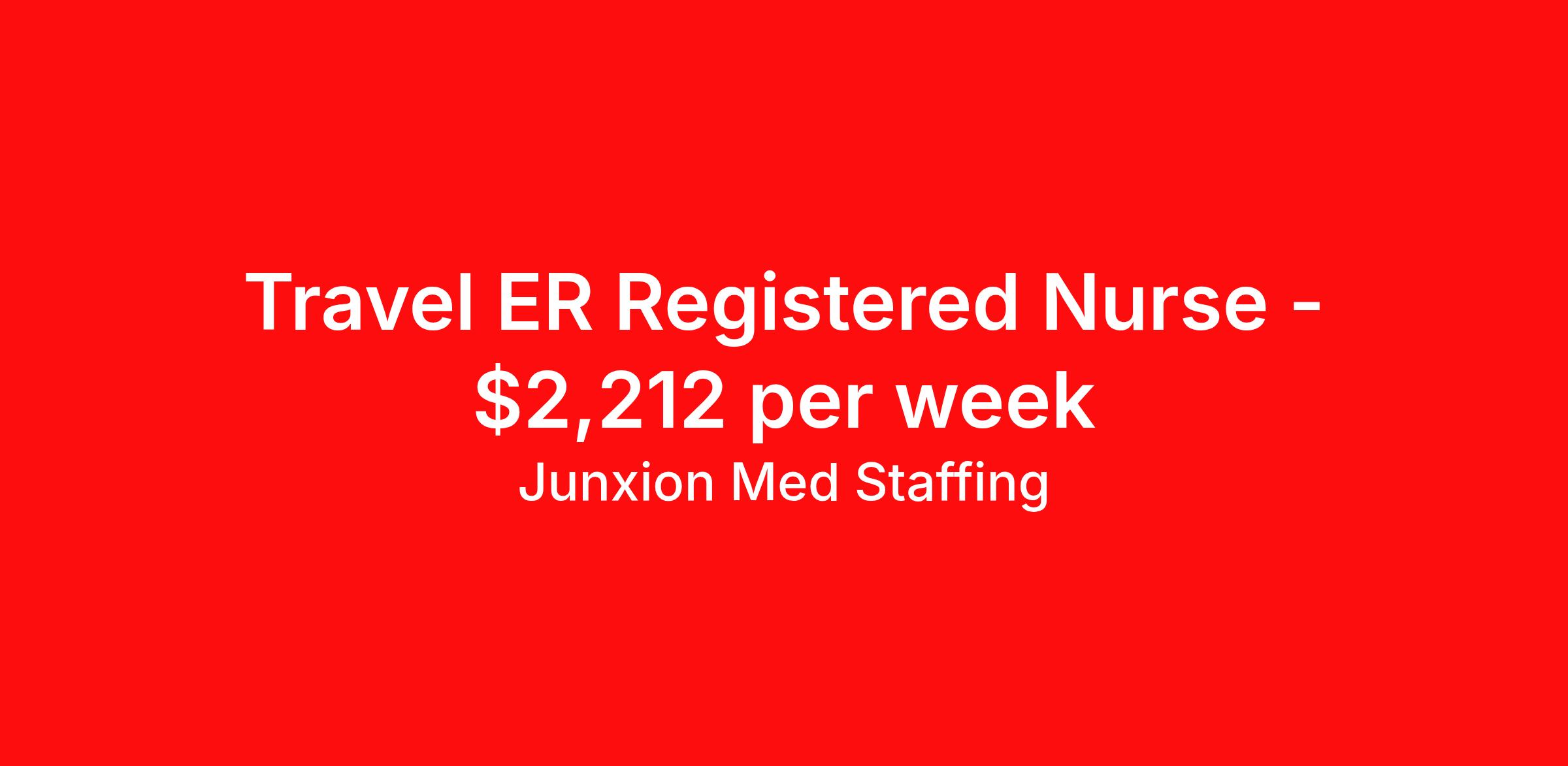 Junxion Med Staffing is seeking a travel nurse RN ED - Emergency Department for a travel nursing job in Des Moines, Iowa. Job Description & Requirements Specialty: ED - Emergency Department Discipline: RN Start Date: 04/06/2026 Duration: 13 weeks 36 hours per week Shift: 12 hours, nights Employment Type: Travel Summary: Junxion Med Staffing is looking for a ER RN to take an assignment in Des Moines, Iowa. This assignment lasts 13 WEEKS and is scheduled to start on April 6, 2026. If you don't like the start date, pay, or shift, then let’s talk. Give us a call opt 1 Job Details: Shift: 12H Nights Total Weekly Hours: 36 Certifications: BLS, License/Certificate Verification Trauma Level: Benefits: Day 1 Insurance Additional bonus potential for every contract Additional vacation incentives Medical insurance with no more than $175 monthly premium for employee Employee Assistance Program (EAP) Referral bonus up to $1,000 401K and access to financial advisors for financial wellness and education A dedicated recruiter and support team that will help you every step of the way to sure you start on time and have an exceptional experience An agency ran by a traveler for travelers Click here for licensing requirements About the Company: Junxion Med Staffing is an award-winning healthcare staffing company with a mission to provide quality healthcare to our communities. Apply today to speak with a recruiter! Awards: RNVIP- Top 10 Travel Nursing Agencies of 2024 BluePipes – The Best Travel Nursing Companies 2023 *Estimated weekly pay includes projected hourly wages and weekly meal and lodging per diems for eligible clinicians based on nationally published GSA rates. Actual weekly pay and per diems may differ from the amount shown and may be subject to change during an assignment. For all employees and employee applicants, Junxion Med Staffing is an Equal Employment Opportunity ("EEO") Employer, including Disability/Vets, and welcomes all to apply. Junxion Med Staffing Job ID 1361273. Pay package is based on 12 hour shifts and 36 hours per week (subject to confirmation) with tax-free stipend amount to be determined. About Junxion Med Staffing Junxion Med Staffing was founded by a former healthcare traveler who understands the challenges healthcare professionals face - because we’ve been there. We specialize in placing travel nurses, allied health professionals, physicians, physician assistants, and nurse practitioners in both short-term and permanent roles across a wide range of specialties. Whether you're looking for a travel contract or a long-term fit, we work to ensure the right match between each healthcare professional and facility. At Junxion, we keep it simple: ● Transparent communication. No surprises, no hidden details, just honest conversations so you always know what to expect. ● Dedicated support. From job search to contract negotiations and throughout your assignment, you’ll have a recruiter who’s with you every step of the way. ● Competitive pay and benefits. We advocate for you to be fairly compensated and supported in your goals. ● A focus on your success. When healthcare professionals feel valued and empowered, patient care improves and that’s what it’s all about. You’re not just a number here. You’re part of a team that actually cares. Let’s find your next great opportunity together. Benefits Weekly pay Referral bonus Dental benefits Vision benefits 401k retirement plan Medical benefits Mileage reimbursement