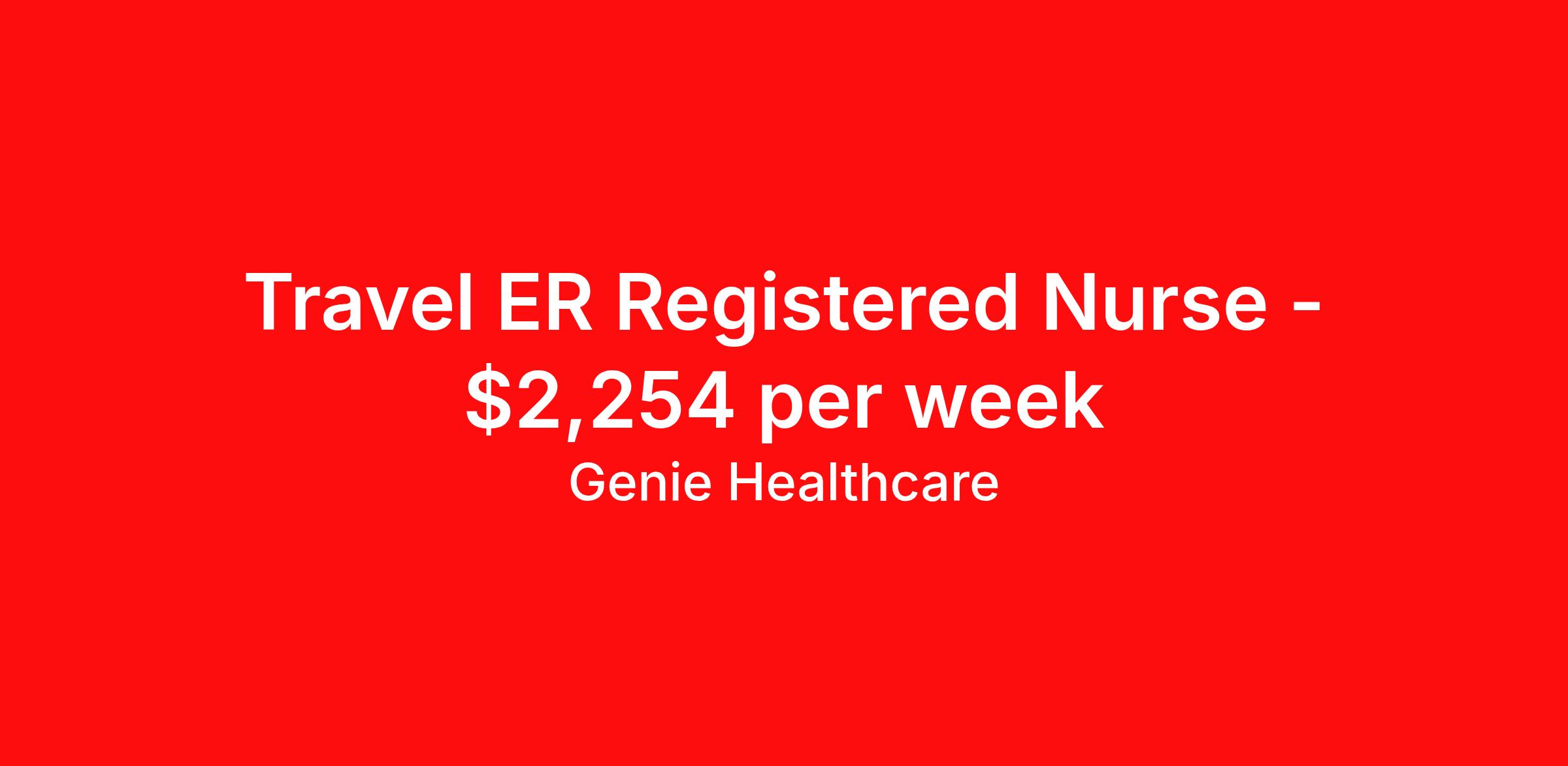 Genie Healthcare is seeking a travel nurse RN ED - Emergency Department for a travel nursing job in Freeport, Illinois. Job Description & Requirements Specialty: ED - Emergency Department Discipline: RN Start Date: 05/04/2026 Duration: 13 weeks 36 hours per week Shift: 12 hours, nights Employment Type: Travel Genie Healthcare is looking for a RN to work in Emergency Room (ER) for a 13 weeks travel assignment located in Freeport, IL for the Shift (3x12 nights, 19:00:00-07:00:00, 12.00-3). Pay and benefits packages are estimated based on client bill rate at time the job was posted. These rates are subject to change. Exact pay and benefits vary based on several things, including, but not limited to, guaranteed hours, client changes in bill rate, experience, etc. Benefits: Medical Insurance, Dental Insurance, Vision Insurance, 401(k) with company matching (50% up to 6% of what you contribute) Genie Healthcare Job ID 17976401. Pay package is based on 12 hour shifts and 36.0 hours per week (subject to confirmation) with tax-free stipend amount to be determined. Posted job title: RN:Emergency Room (ER),19:00:00-07:00:00 About Genie Healthcare Genie Healthcare is one of the fastest growing Nurse Travel Agencies in the USA. Genie serves hundreds of facilities and has over 4000 current travel RN contracts open at any given time. Genie provides travel RN’s flexibility, support, top pay scale, housing and the 1 rated, multi-state health insurance coverage. Genie Healthcare carries with it a commitment to providing a comprehensive level of service and quality care. Growing from a small team of eager recruiters to a company with satisfied clients in nearly every corner of the nation, delivering excellence in patient and customer care is the key to Genie’s success. The management team has 20 years of experience in workforce solutions and staffing in medical and non-medical fields, roles ranging from Clerical job to Cardiologist to software developer to CEO.