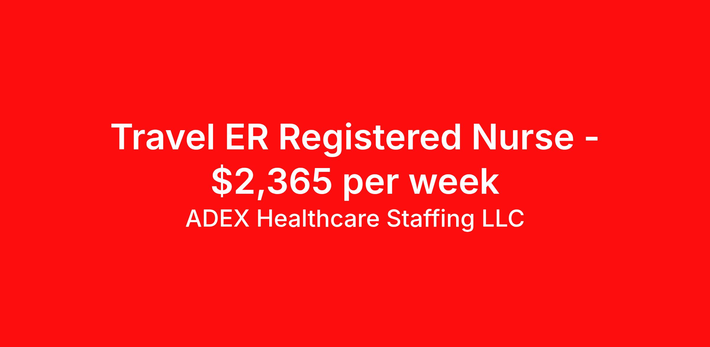 ADEX Healthcare Staffing LLC is seeking a travel nurse RN ED - Emergency Department for a travel nursing job in Globe, Arizona. Job Description & Requirements Specialty: ED - Emergency Department Discipline: RN Start Date: 03/30/2026 Duration: 13 weeks 36 hours per week Shift: 12 hours, nights Employment Type: Travel RN Position Job Notes: Travel or Local Registered Nurse needed for ASAP start. A minimum of 2 years of recent hospital bedside experience is required. Candidates must be able to start within 5 weeks. Opportunity for extension upon successful completion of the initial assignment. $750 referral bonus available. Opportunity: RN - ER Job Details: • Work 36 hours per week in 12-hour shifts • 13-week assignment duration • Previous travel experience strongly preferred • Required to take call shifts lasting 24 hours in duration • Experience with Meditech 6.0 EMR system preferred • Flu vaccine required with no exceptions • Must live more than 100 miles from the facility (100-mile radius rule applies) • Maximum of 3 requested time off days allowed per 13-week contract • Facility may cancel up to 3 shifts per 13-week assignment without guaranteed hours applying • Provide emergency nursing care in fast-paced emergency department environment Facility: This regional medical center serves as a comprehensive healthcare facility providing emergency services and acute care to the surrounding community. The facility utilizes Meditech 6.0 electronic medical record systems and maintains staffing flexibility through contract assignments. The organization emphasizes immunization requirements and maintains specific policies regarding traveler eligibility and scheduling to ensure consistent patient care delivery. Location: Globe, AZ Globe offers a unique desert mountain setting in central Arizona with rich mining history and stunning natural landscapes. The area provides outdoor recreation opportunities including hiking, camping, and exploring nearby Tonto National Forest, making it an attractive location for healthcare professionals seeking adventure and natural beauty. Adex Job ID 294834. Pay package is based on 12 hour shifts and 36 hours per week (subject to confirmation) with tax-free stipend amount to be determined. About ADEX Healthcare Staffing LLC ADEX has been placing healthcare professionals across the US since 2004. Originally founded in Atlanta, GA, the company's headquarters are now located in Tampa, FL. JCAHO certified since 2009. Benefits Referral bonus